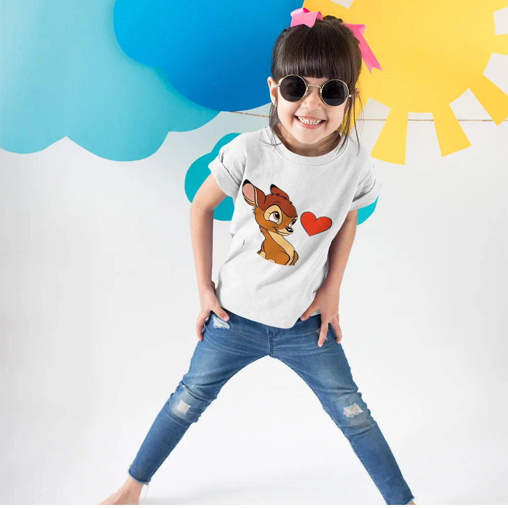Футболка для девочек и мальчиков 12 лет, футболка с изображением мультяшного оленя из мультфильма Disney, детская одежда в стиле Харадзюку