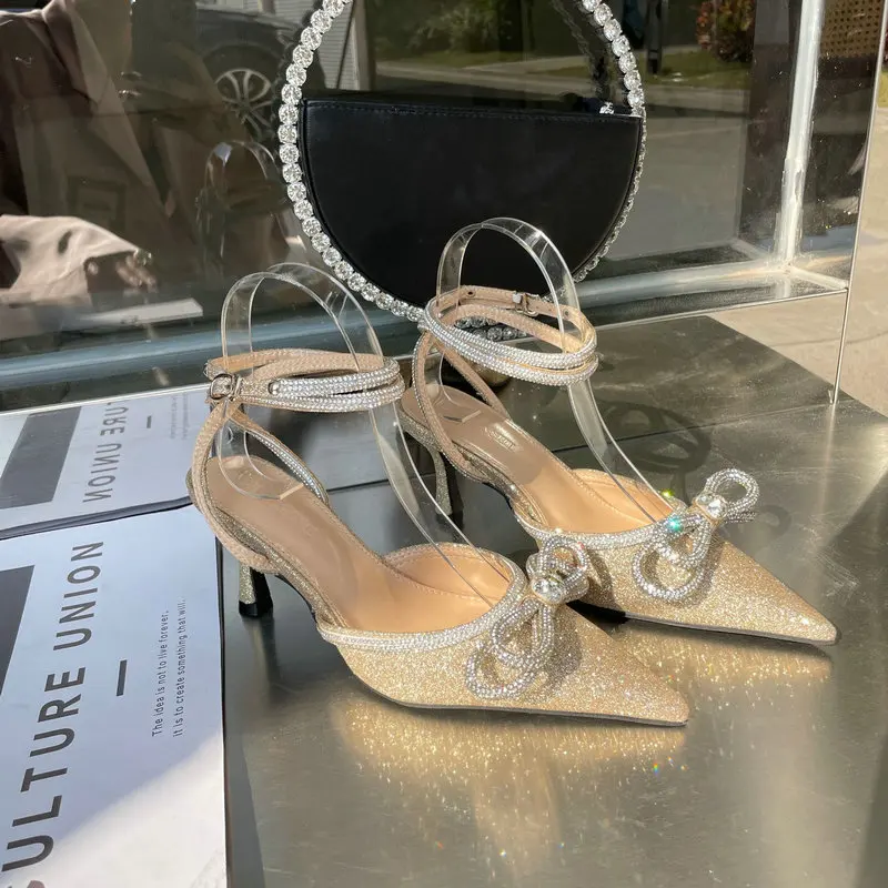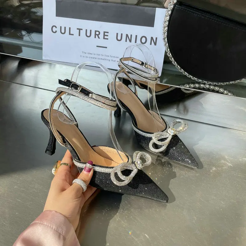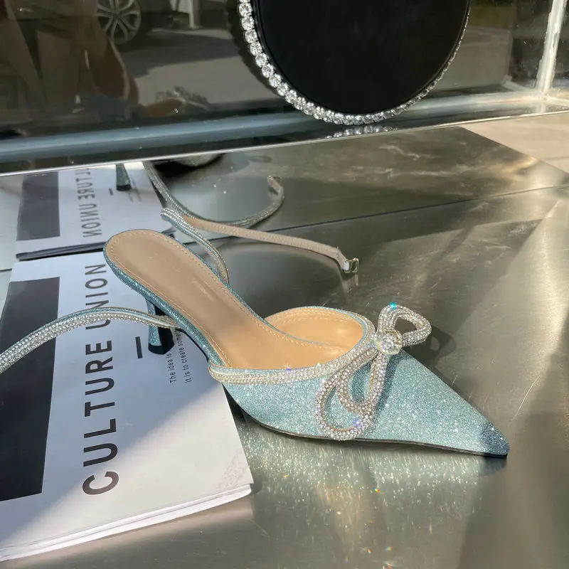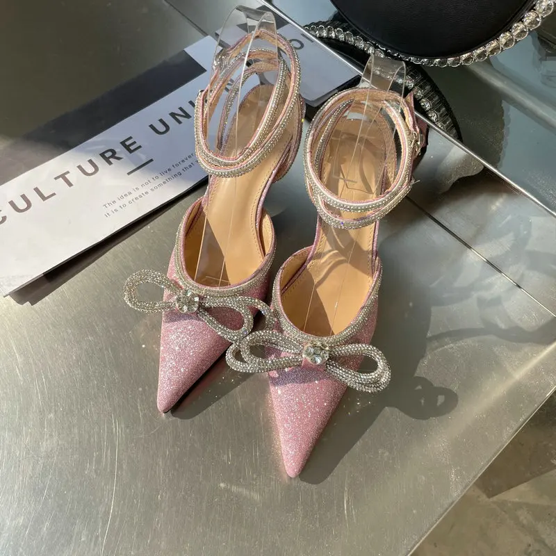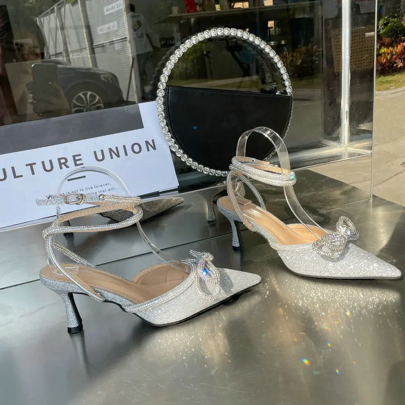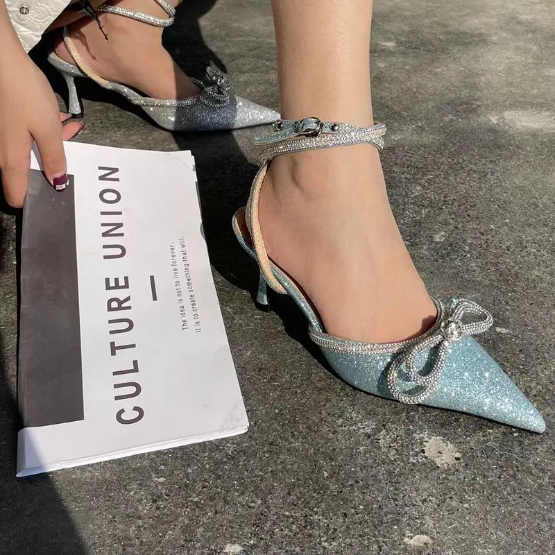 Женские сандалии стразы с бантом-бабочкой, босоножки на тонком кабл...