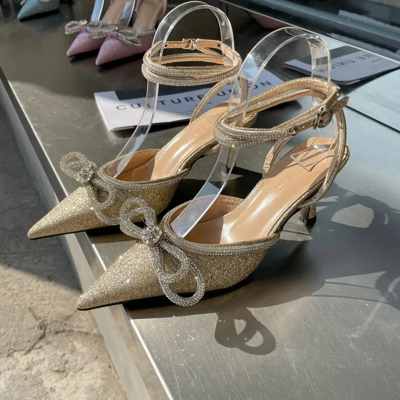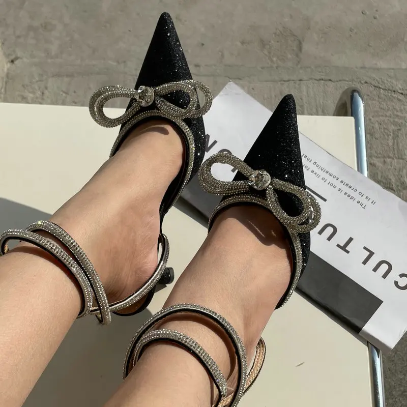 2021 роскошные стильные сандалии с острым носком и бантом; Женские ...