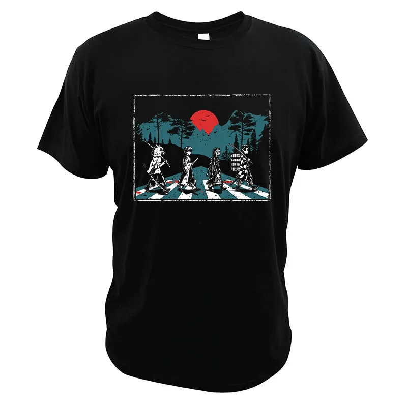 Забавная футболка с изображением рассекающего демонов, карикатура, аббатская дорога, Tanjiro Nezuko Zenitsu Inosuke японская серия манга, летняя забавная футболка