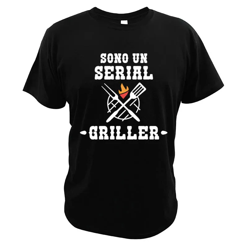 Футболка с надписью Я серийный гриль, удобные топы с рисунком