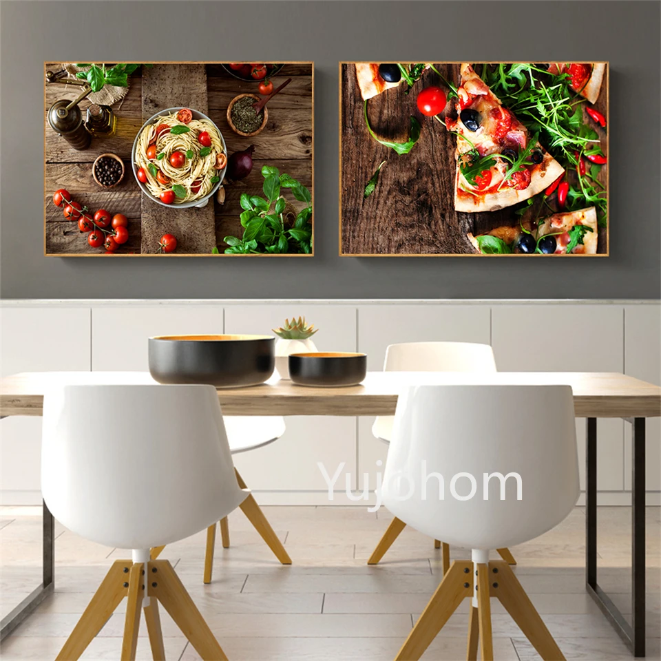 Искусство на стену, вкусная пицца, томатный перец, свежая паста, чеснок, еда, картина, постеры, печать, кухня, Декор, картина, печать на холсте