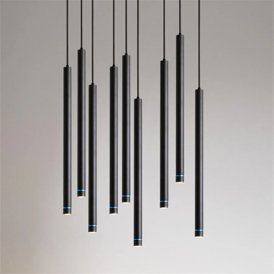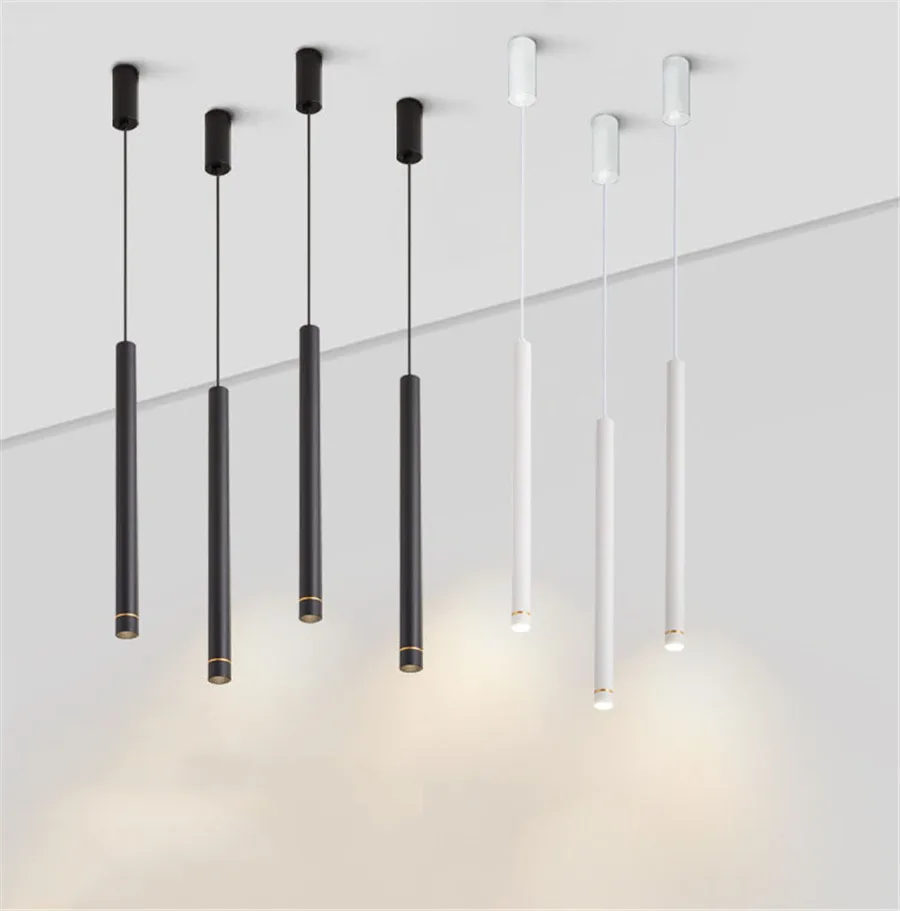 Черно-белая светодиодная люстра, Современная длинная трубчатая Подвесная лампа, кухонный остров, столовая, украшение для магазина, цилиндрическая трубка, подвесной светильник