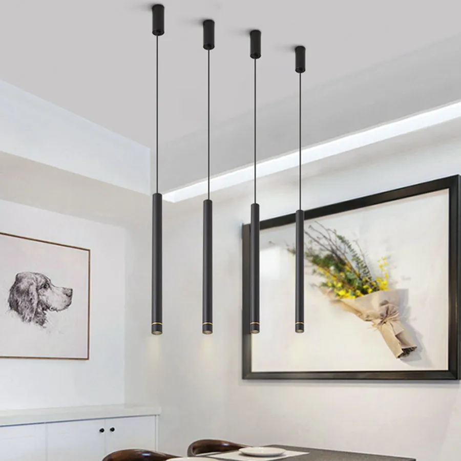 Черная/Белая светодиодная люстра, Современная длинная Подвесная лампа с трубкой, кухонный остров, украшение для столовой, магазина, подвесной светильник с цилиндрической трубкой