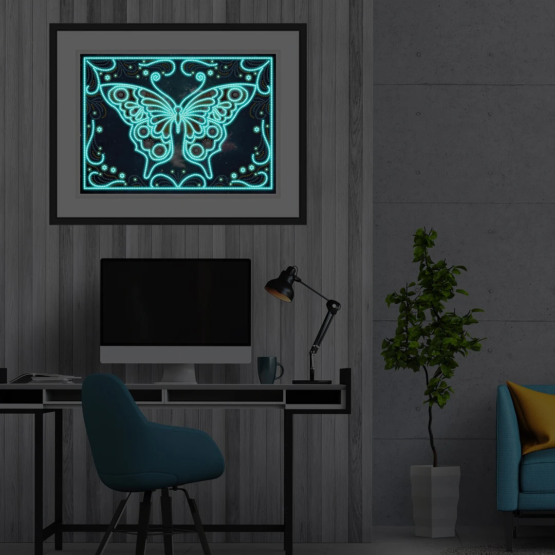 Алмазная живопись 5D со светящимися бабочками, круглые стразы, вышивка, смола, подарок светится ночью, настенные картины