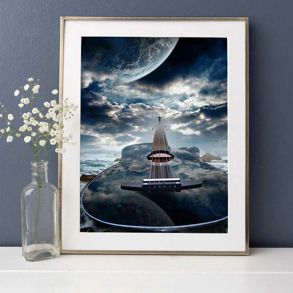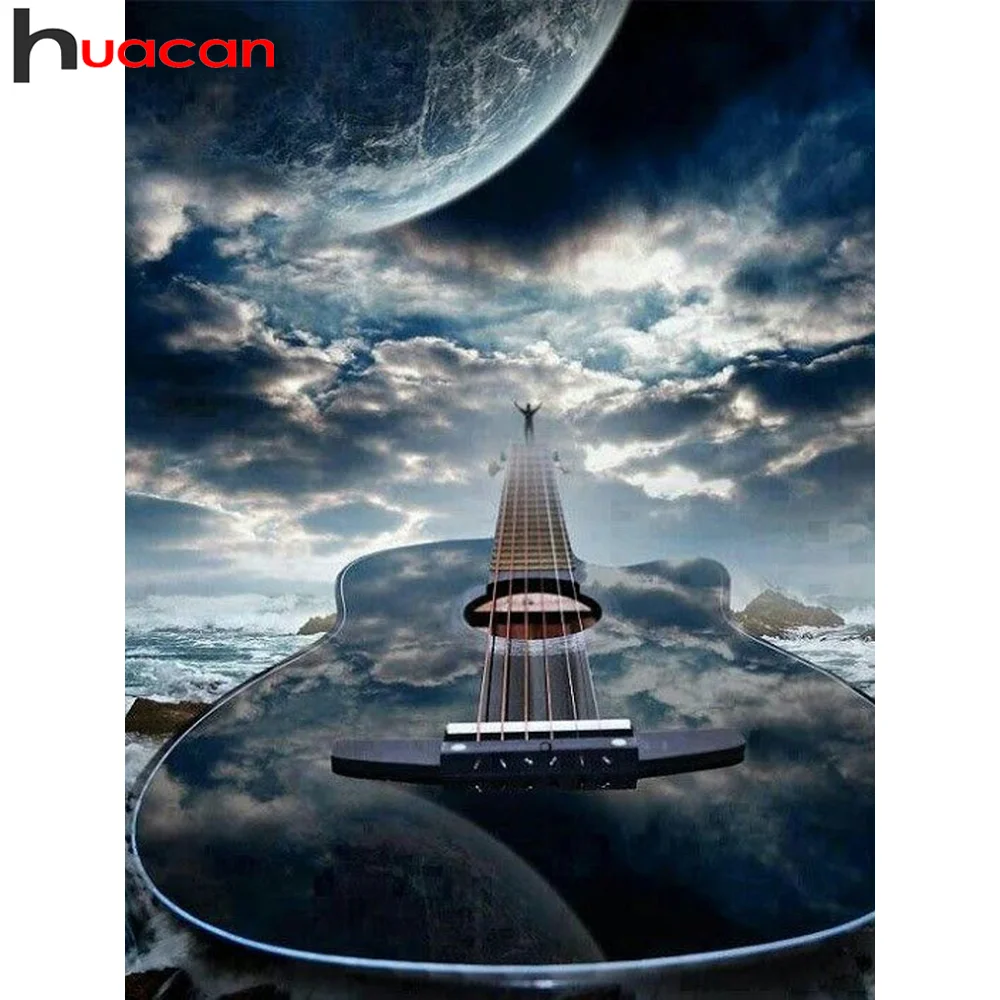 Huacan алмазов картина новое поступление гитары планета мозаика музыкальный инструмент вышивка пейзажа крестиком стены наклейки подарок