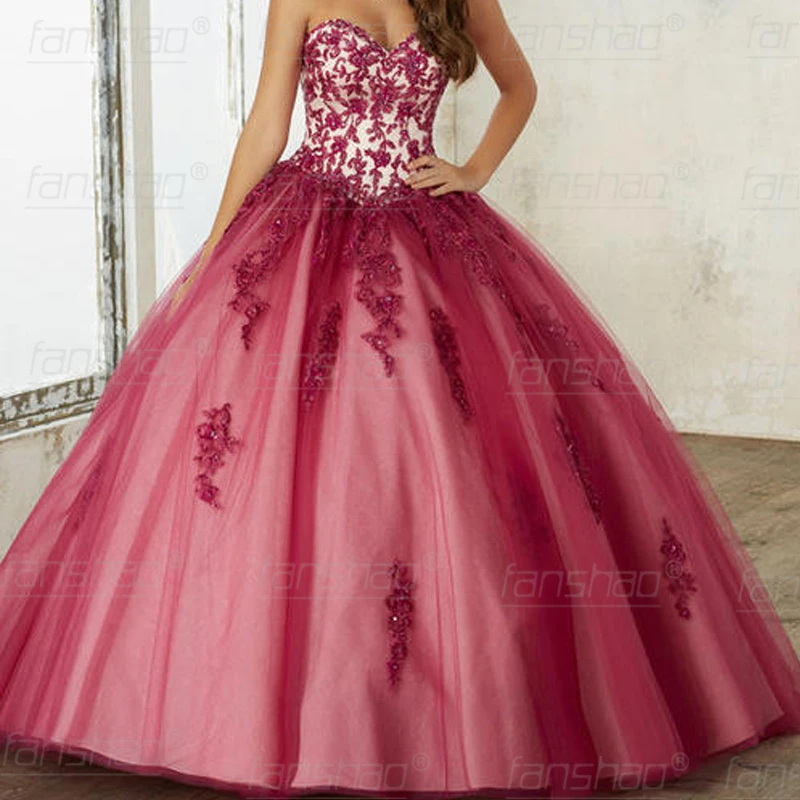 Fanshao розовые платья Quinceanera 3D Цветы Appliq...