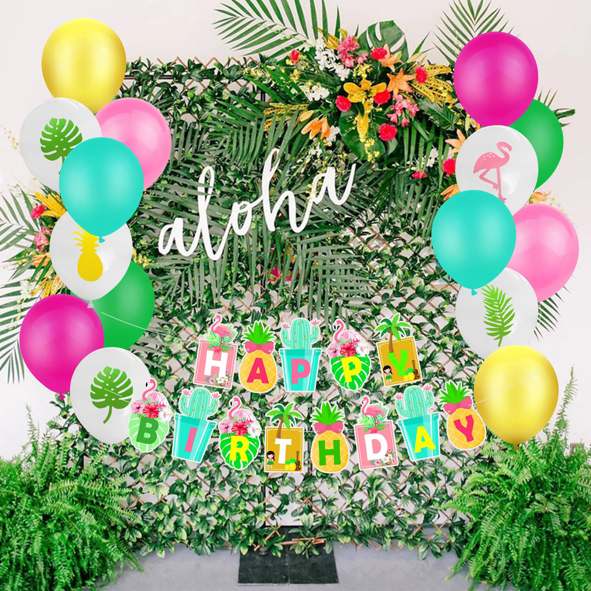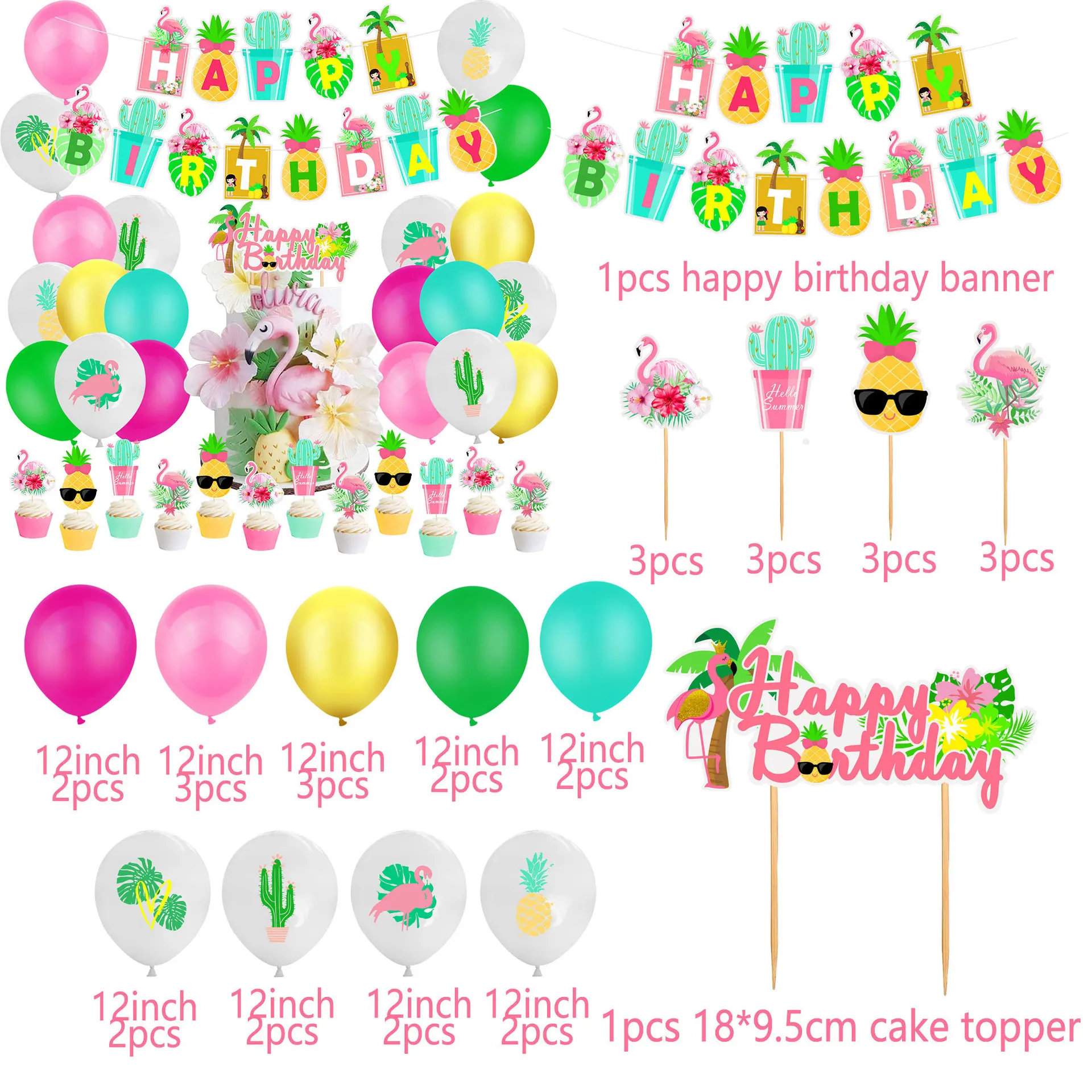 Гавайские шары на день рождения, воздушные шары Aloha Flomingo Baloon, тропический ананас, листья в форме Панциря Черепахи, с днем рождения, украшение для вечеринки Hello Summer
