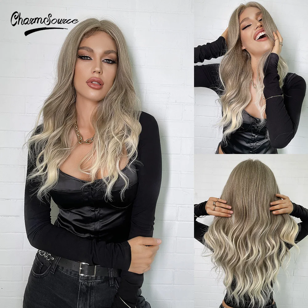 Парики CharmSource для белых женщин, длинные светильник лые волнистые волосы, шнуровка, коричневый, Омбре, блонд, повседневные, высокая плотность, термостойкие