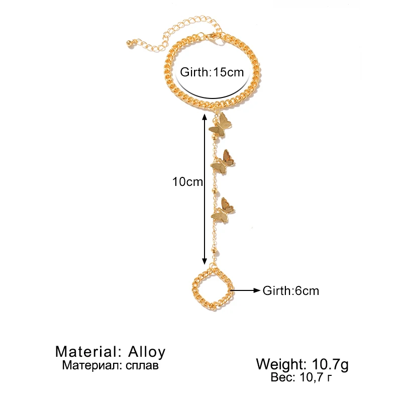 Винтажный браслет с бабочкой и кольцом на палец, золотая цепочка с ...