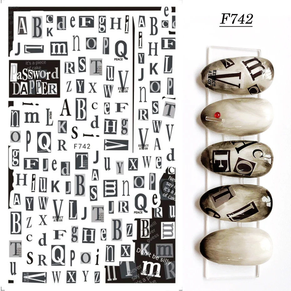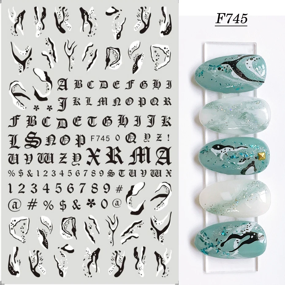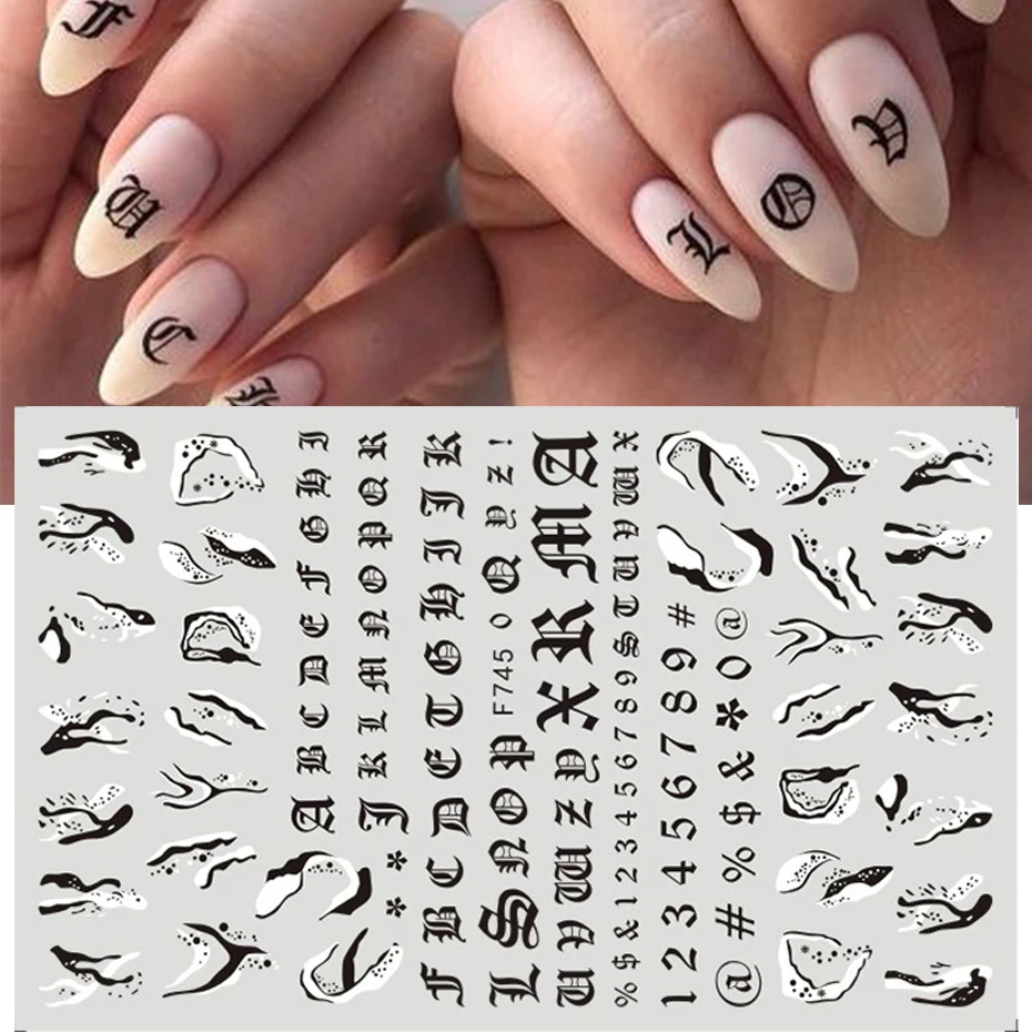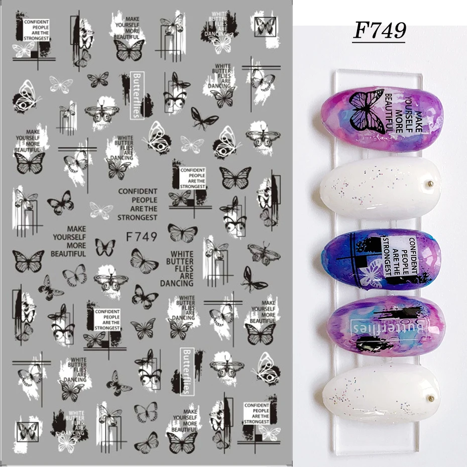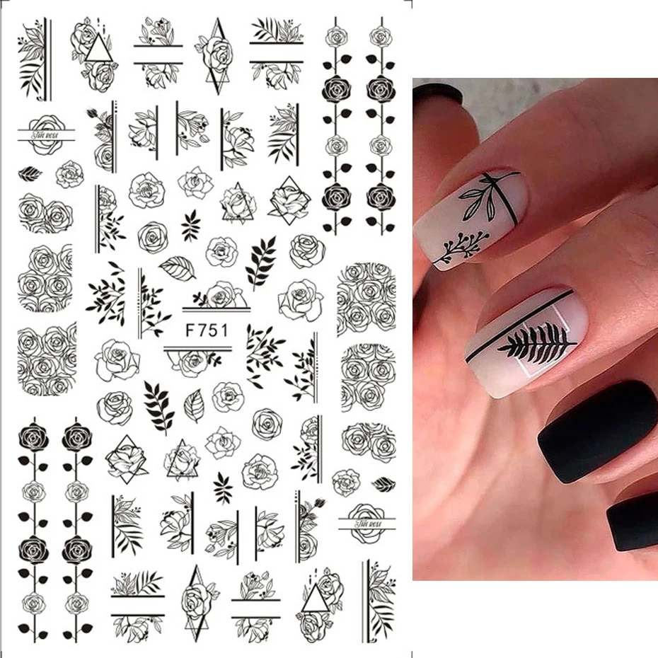 1 шт. черно-белые листья цветок 3D стикер для ногтей геометрические буквы бабочка клейкая передача слайдеры Маникюр обертывания