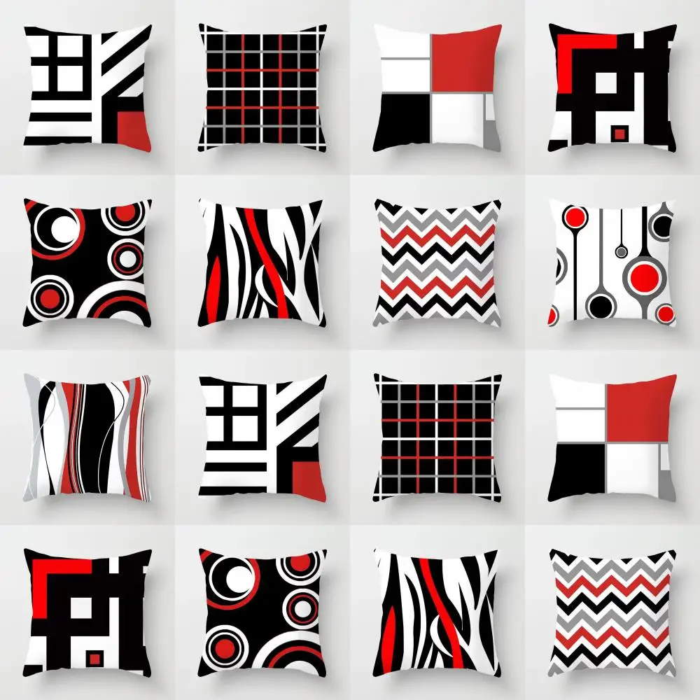 Чехол для диванной подушки, Минималистичная подушка, красный и черный, подушка с абстрактным геометрическим узором, для домашнего декора, 45x45 см, для автомобиля