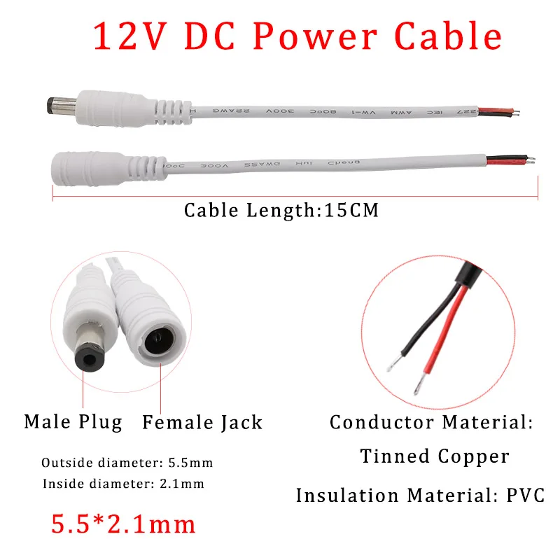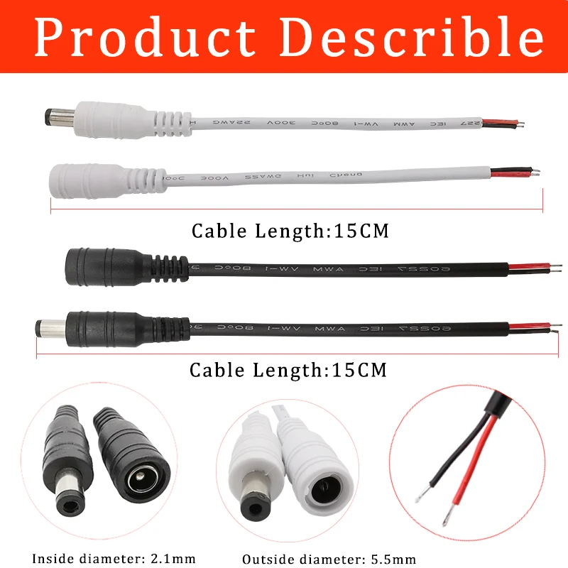 UesageDC 2.1mm x 5.5mm Wire Power Pigtails Adapter Barrel Plug Socket Cables