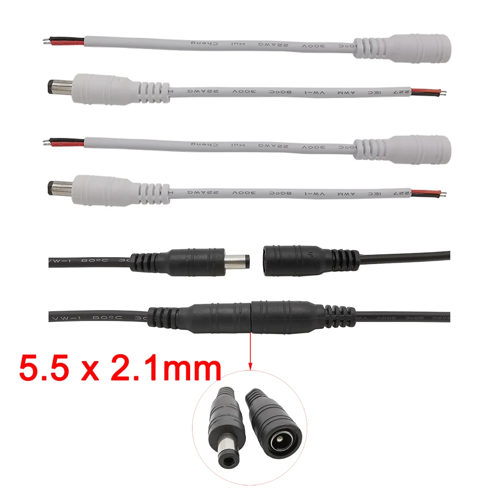 Детские носки, 5 пар 5,5x2,1 мм, работающего на постоянном токе 12 В в Мощность Гнездовой разъем Jack поставить отрезок провода разъемы черный, Белый Цвет DC Мужской Женский Светодиодные ленты светильник кабель адаптера