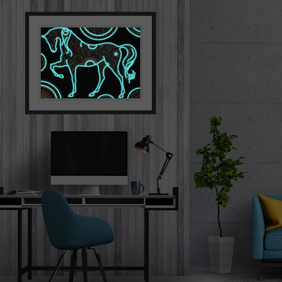 Светящаяся в темноте алмазная живопись с рисунком лошади Слона Живо...