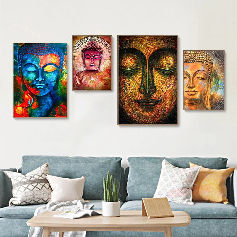 Современные Золотой Будда на холсте настенные картины принты и Плак...