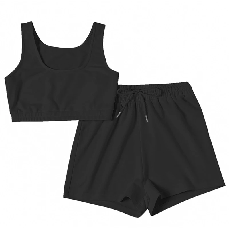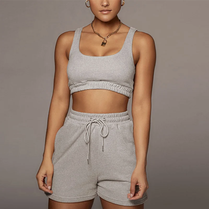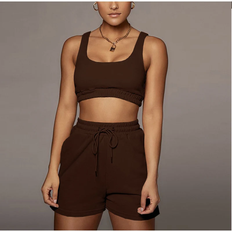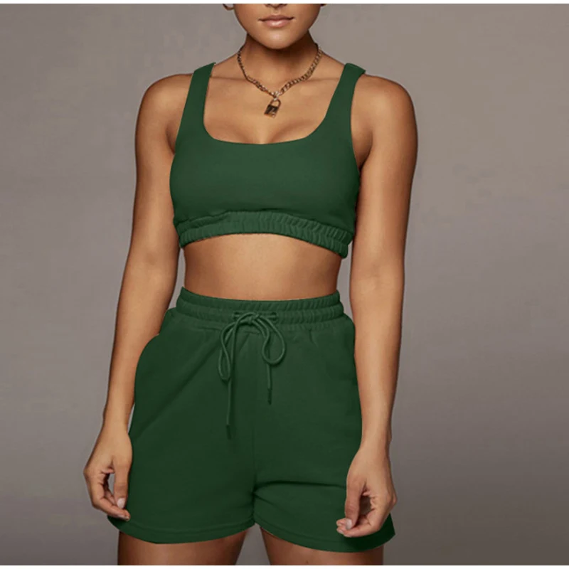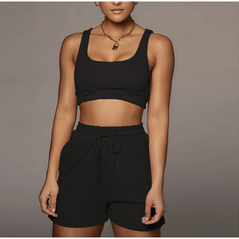 Костюм спортивный женский из двух предметов, повседневный однотонный укороченный топ и шорты на кулиске, модная одежда для отдыха, лето 2021