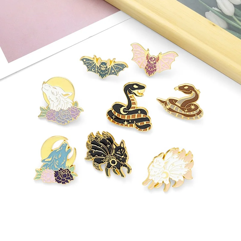 XEDZ и лунной фазой, брошь с животным, ночной эмаль животных "Волк" летучая мышь со змеиным рисунком лисы игла с солнце и луна звезды верхняя часть Черного брошь в стиле панк, ювелирное изделие для пары, Gif