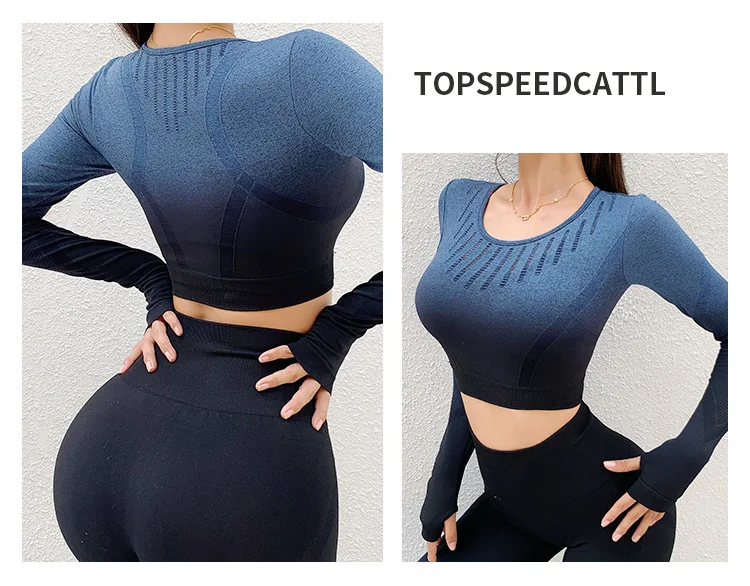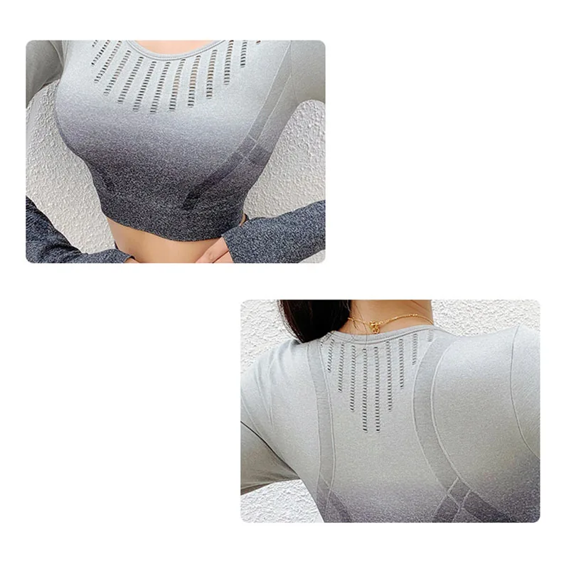 Укороченный топ для йоги с длинными рукавами и отверстиями для больших пальцев