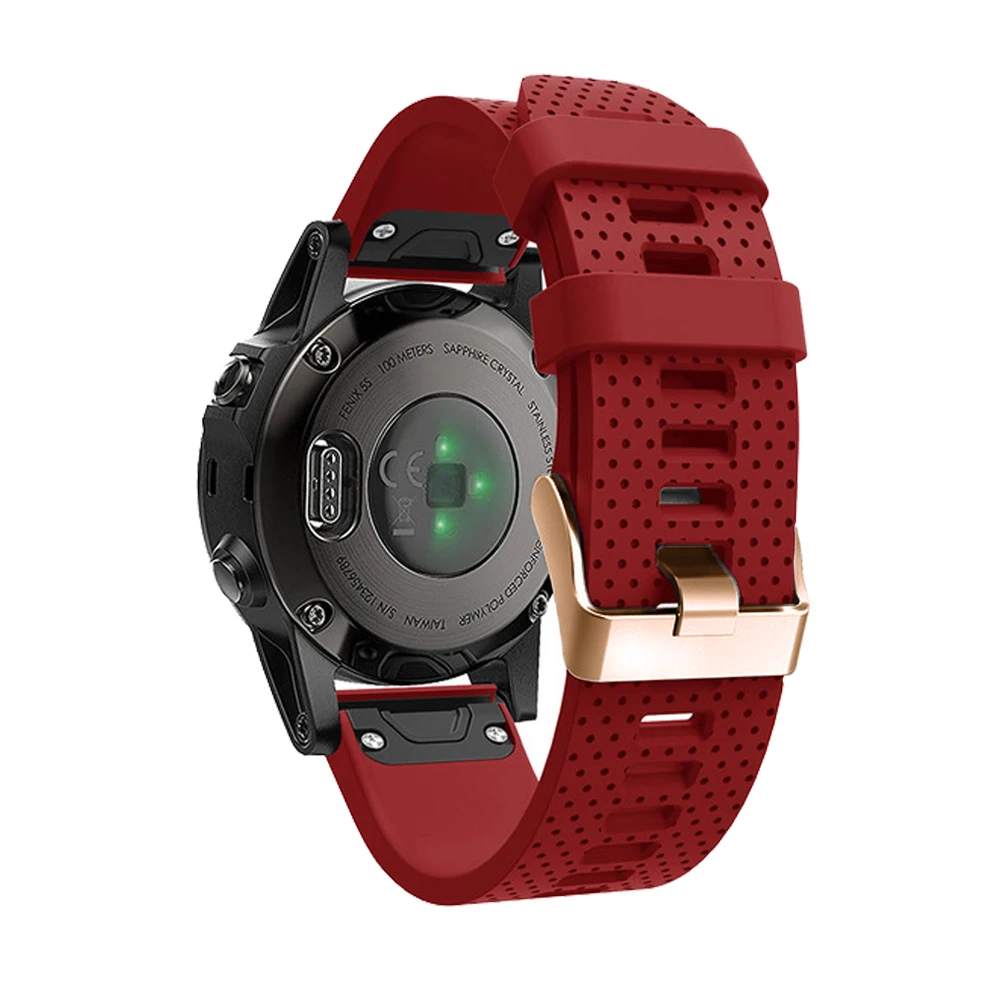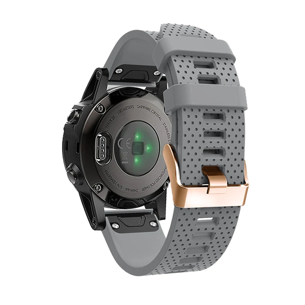 Спортивный силиконовый ремешок для часов Garmin Fenix 6X, 6, 6S Pro, 5, 5S Plus, 20 мм, легко регулируемый, с пряжкой цвета розового золота