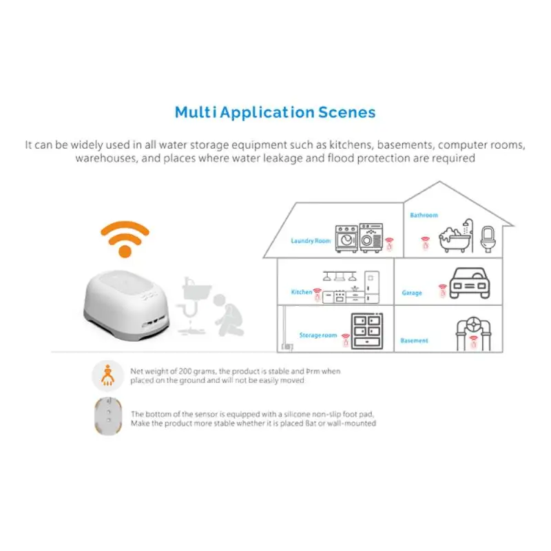 Нижняя часть датчика оснащена силиконовой нескользящей подушкой для ног, что делает изделие более стабильным, независимо от того, находится ли оно в положении летучей мыши или на стене.
