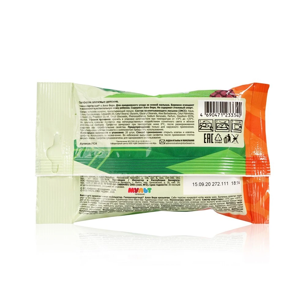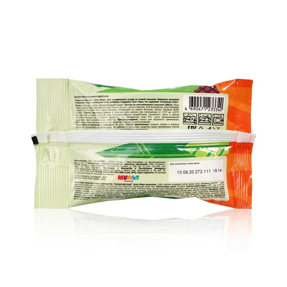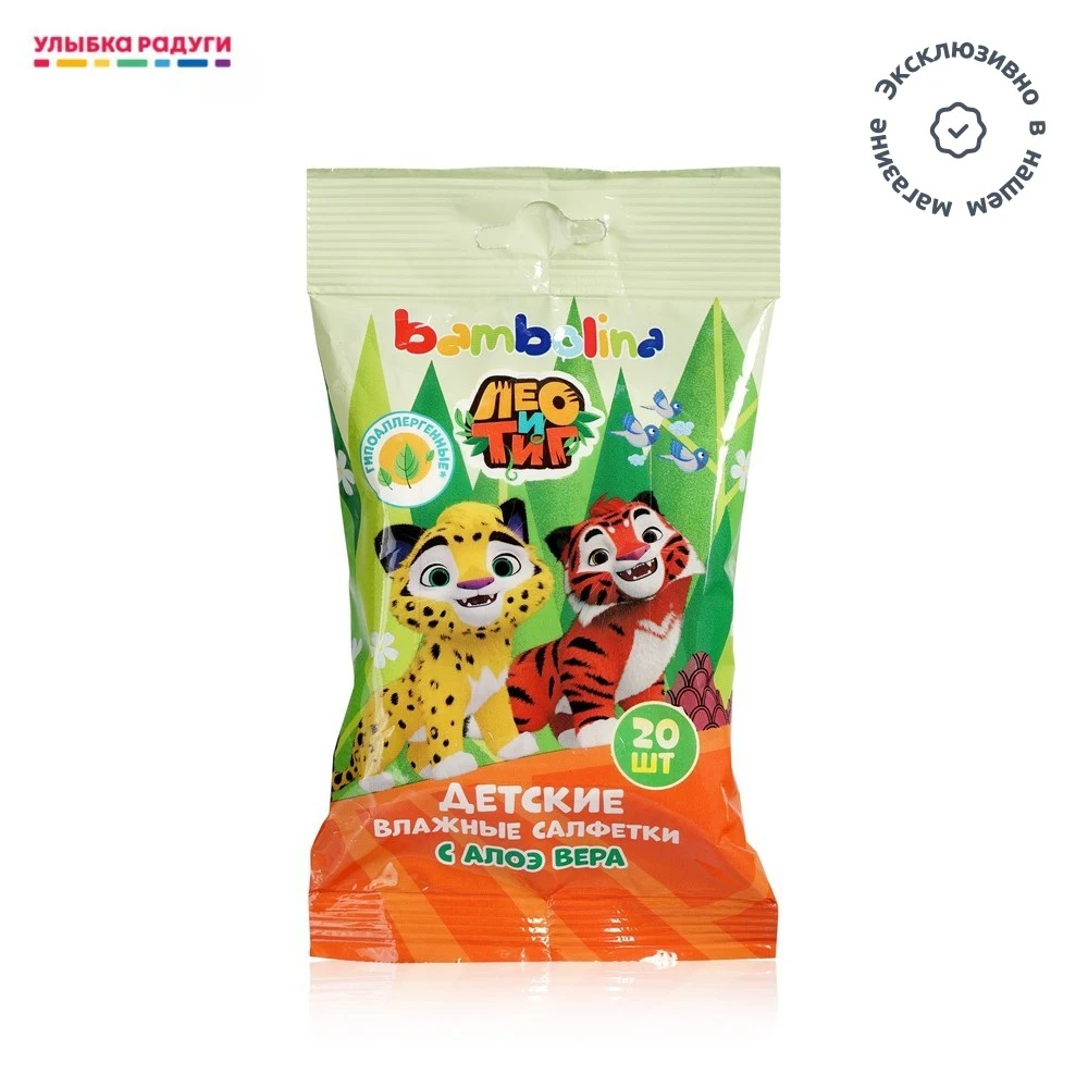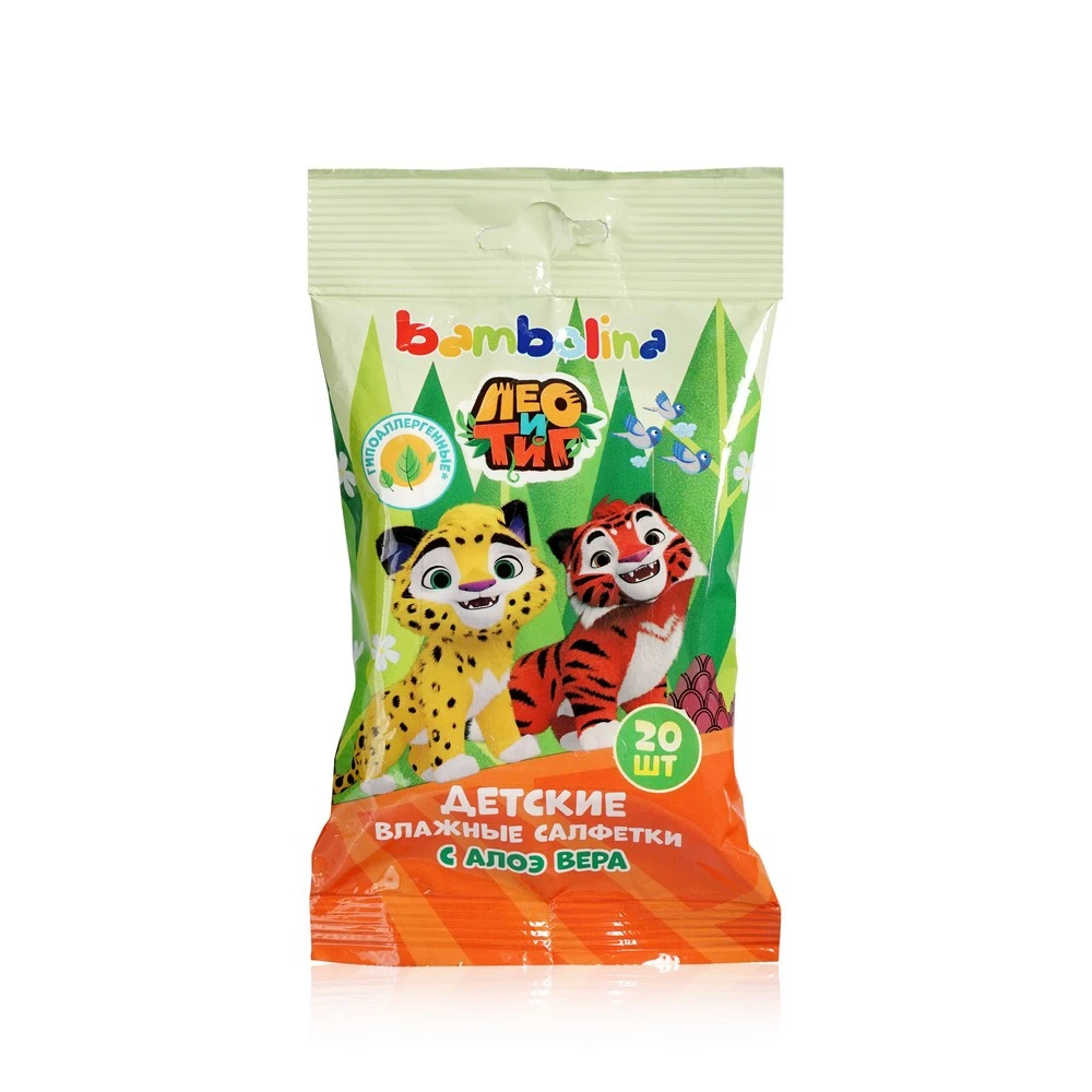 Детские влажные салфетки Bambolina Лео и Тиг, с алоэ вера, 20штук