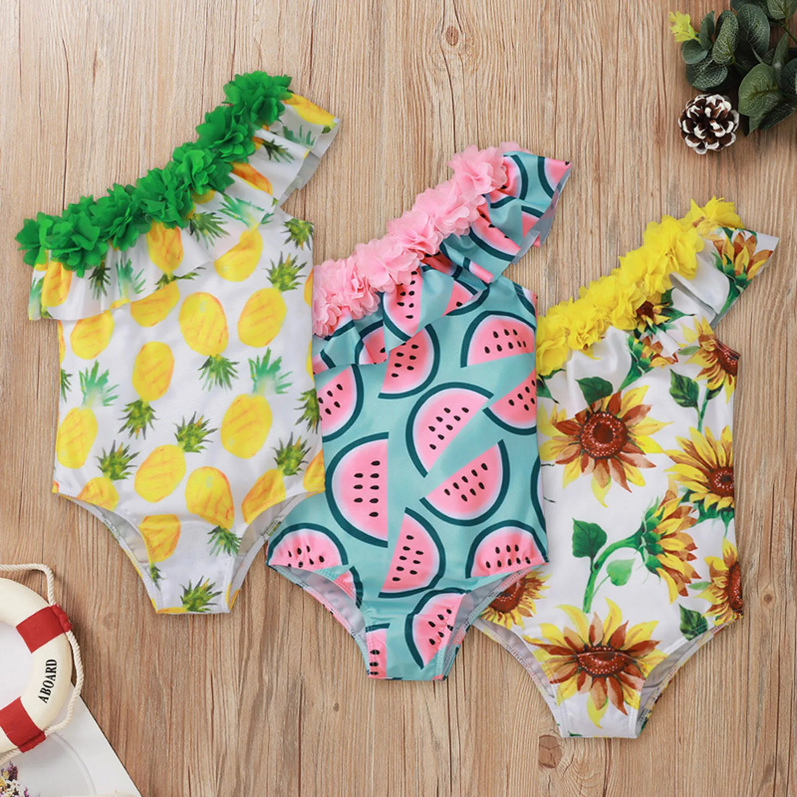 Купальник-бикини с рюшами для маленьких девочек, Цельный купальник, пляжная одежда