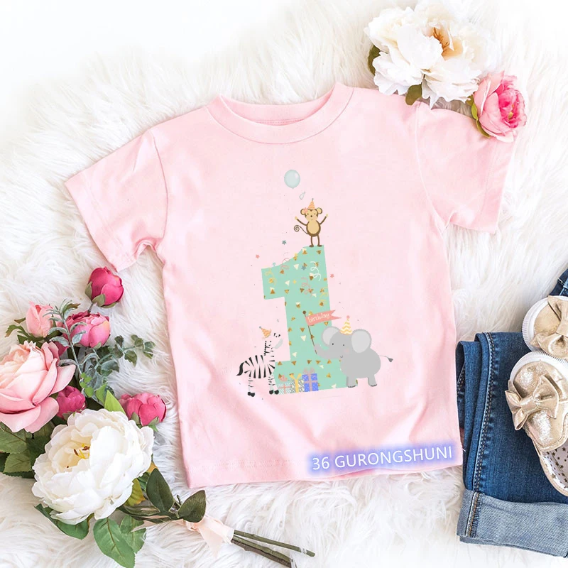 Футболка для мальчиков и девочек, милый графический принт с цифрами на день рождения от 1 до 4 лет, одежда для детей на день рождения, летняя футболка
