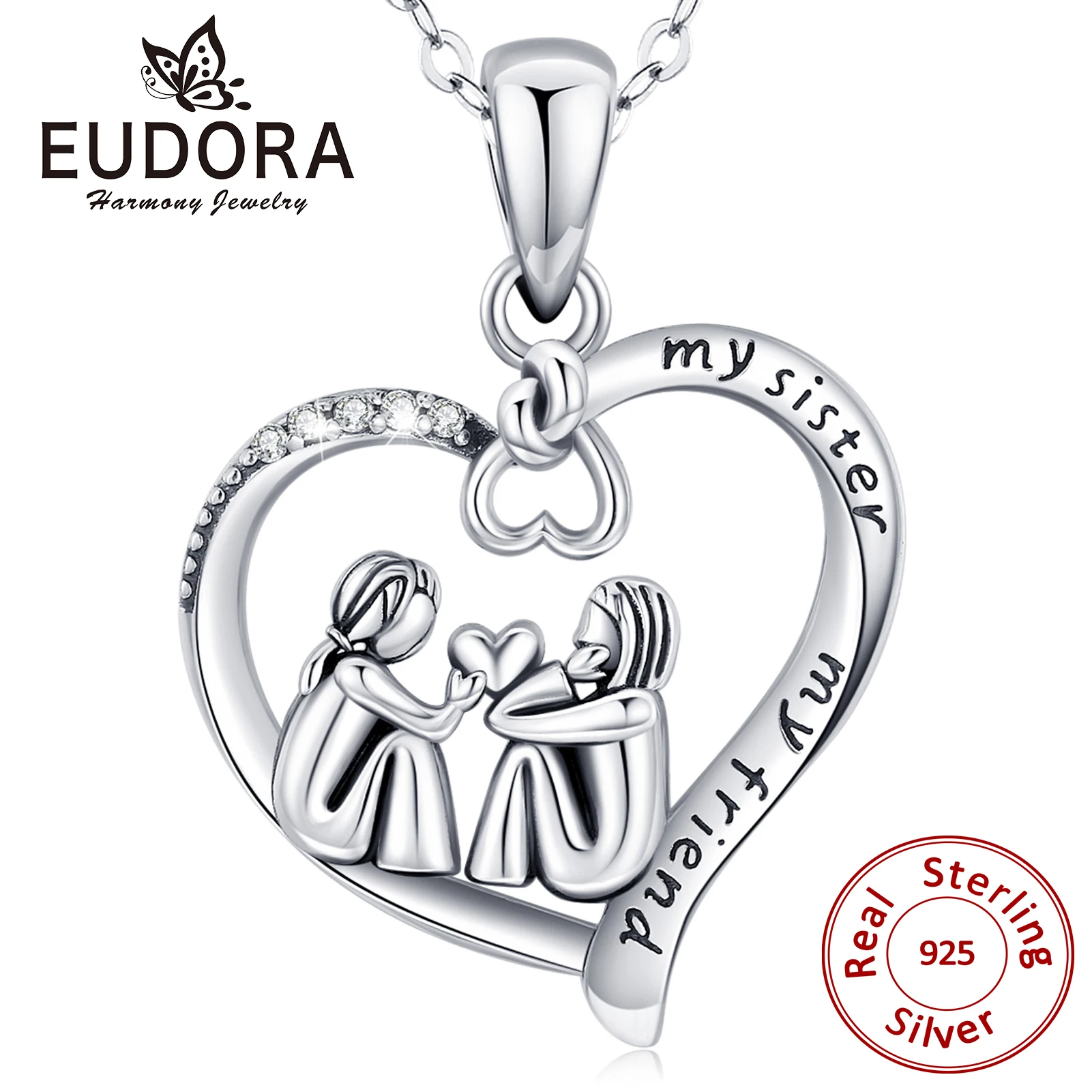Ожерелье с сердечками Eudora из серебра 925 пробы с кулоном в виде сердечек для моей сестры с сердцем CZ-лучший подарок для сестер и друзей 626