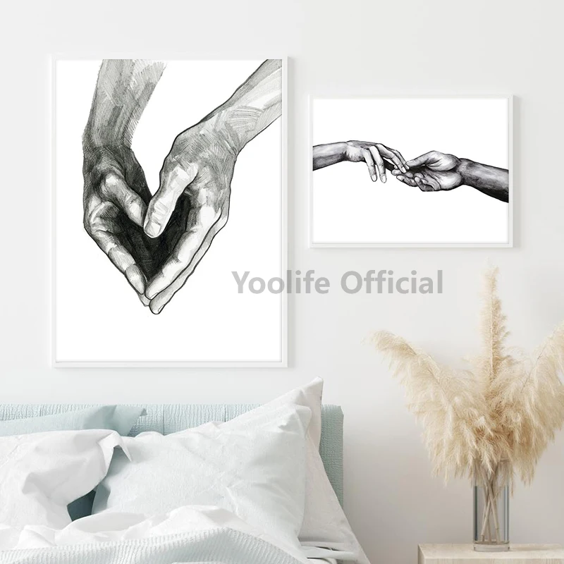 Черно-белые плакаты и принты в виде сердца, держащих руки, современные абстрактные линии, минималистичные фотографии, скандинавские настенные художественные украшения