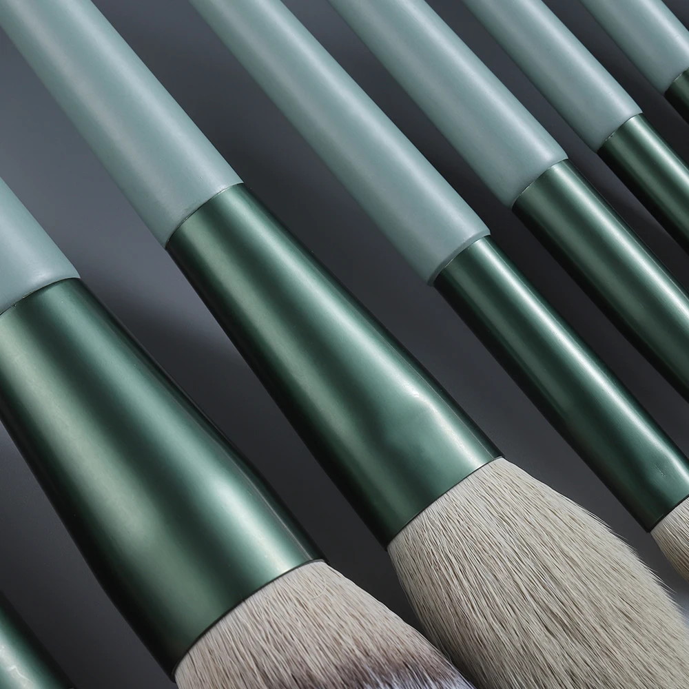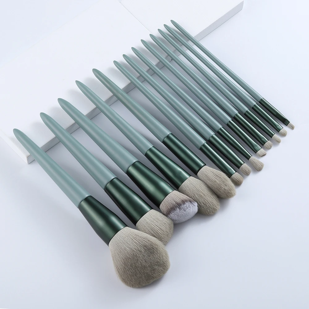 Набор зеленых кистей для макияжа FLD, 13 шт., стартовая основа для макияжа, румяна, тени для век, кисти для растушевки бровей, инструменты для макияжа
