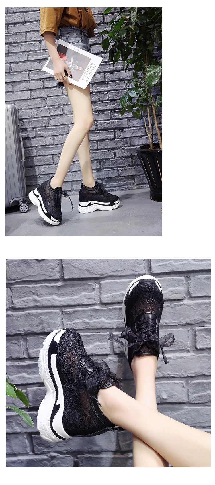 Женские кроссовки на платформе, высокий каблук, сетчатые дышащие, п...