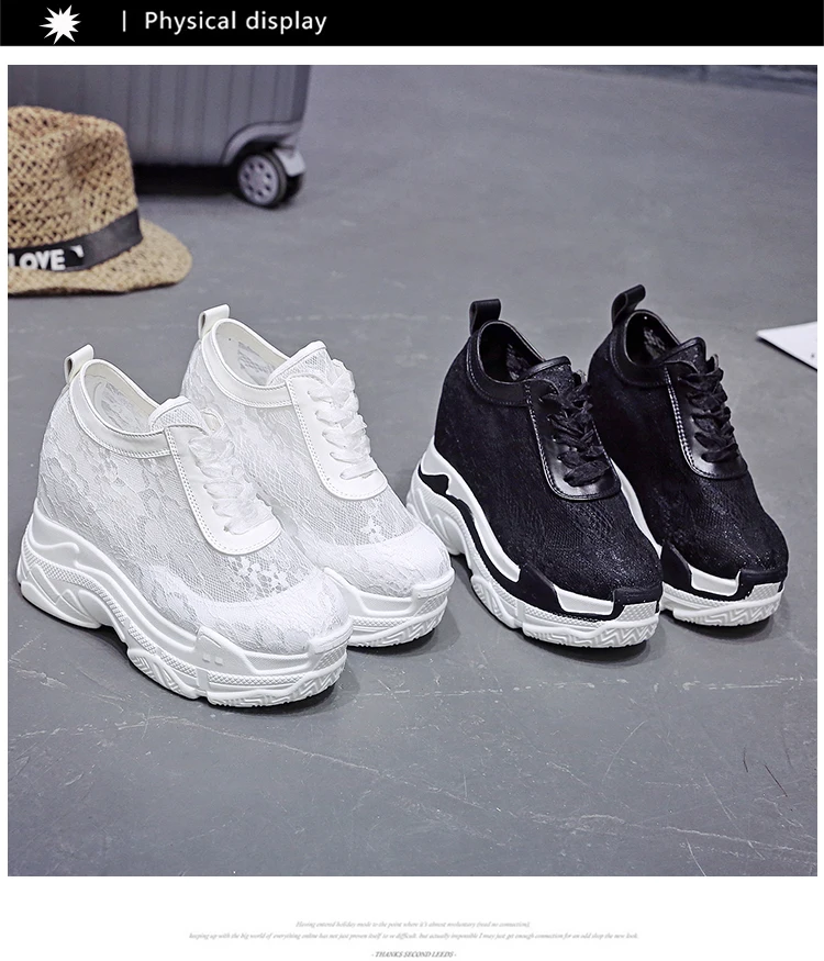 Женские кроссовки на высокой танкетке; Женские кроссовки на платформе в стиле Лолиты; Летняя дышащая повседневная обувь с кружевными цветами для женщин; 2021