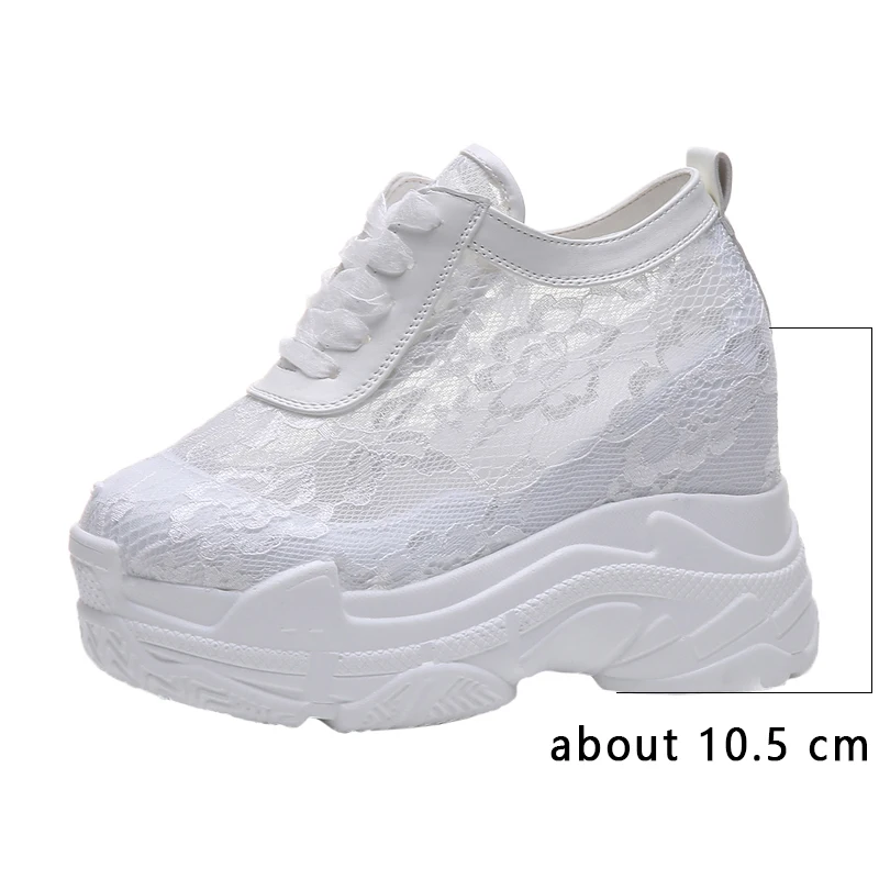 Кроссовки женские сетчатые, белые, на высоком каблуке 12 см