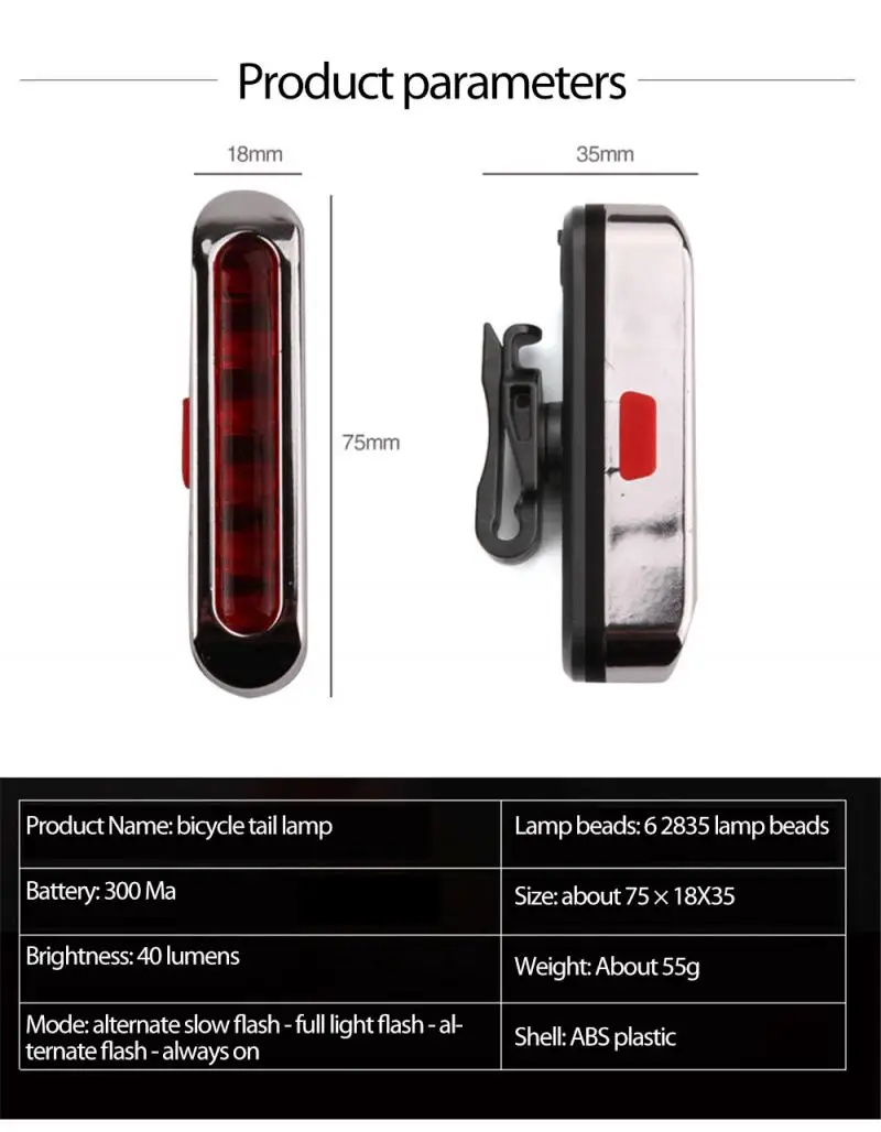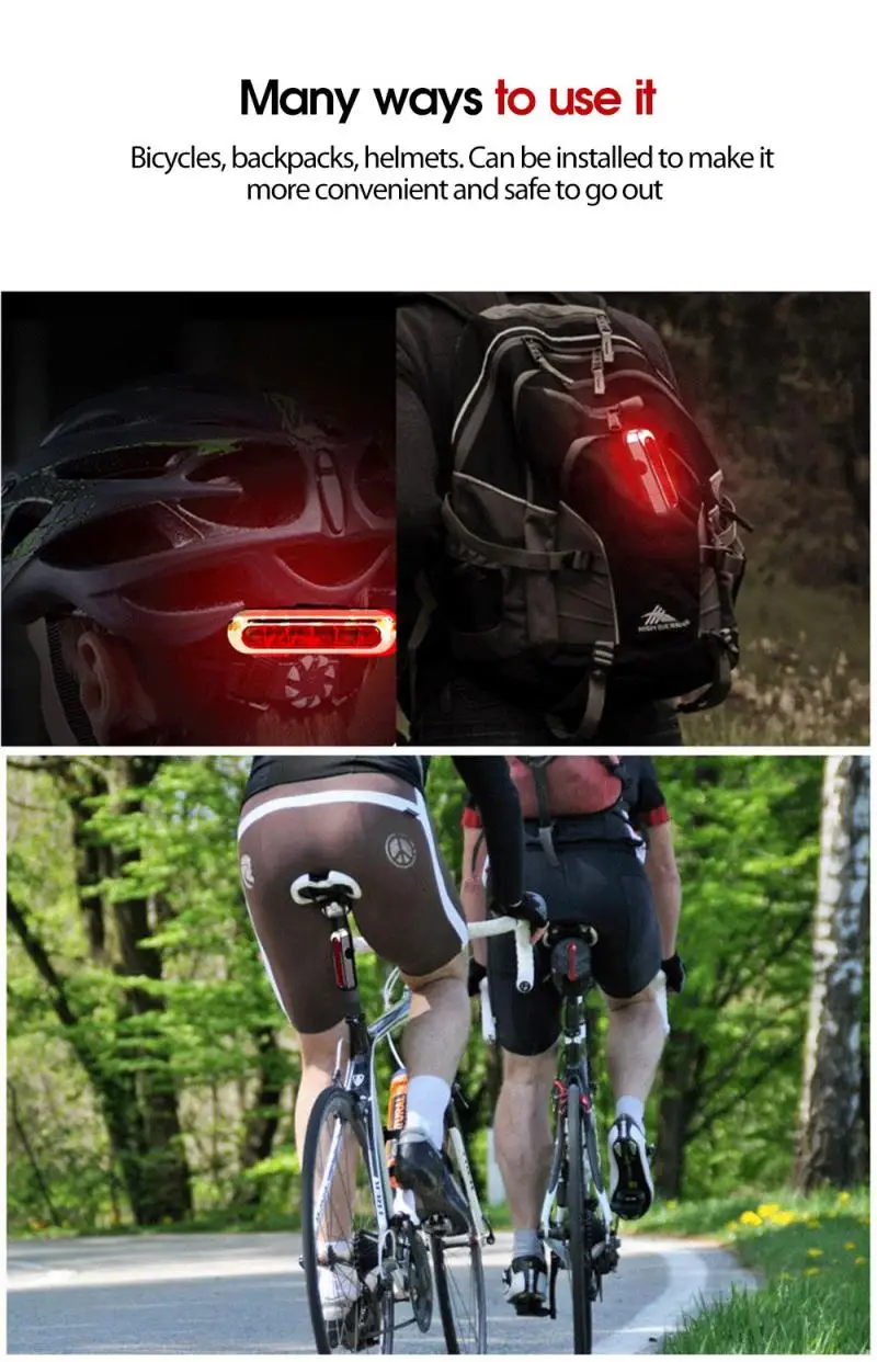 Яркий предупреждающий задний светильник Водонепроницаемый и ударопрочный, быстрая зарядка через USB Стильные яркие задние фонари, CoB лампы бусины + PC абажур, яркий и не ослепительный 360 ° регулируется, в соответствии с личными потребностями Четыре светильник режима к окружающей среде испытания, чередуя медленное мигание-все светильник s мигает быстро-поочередно Быстрое мигание-always on
