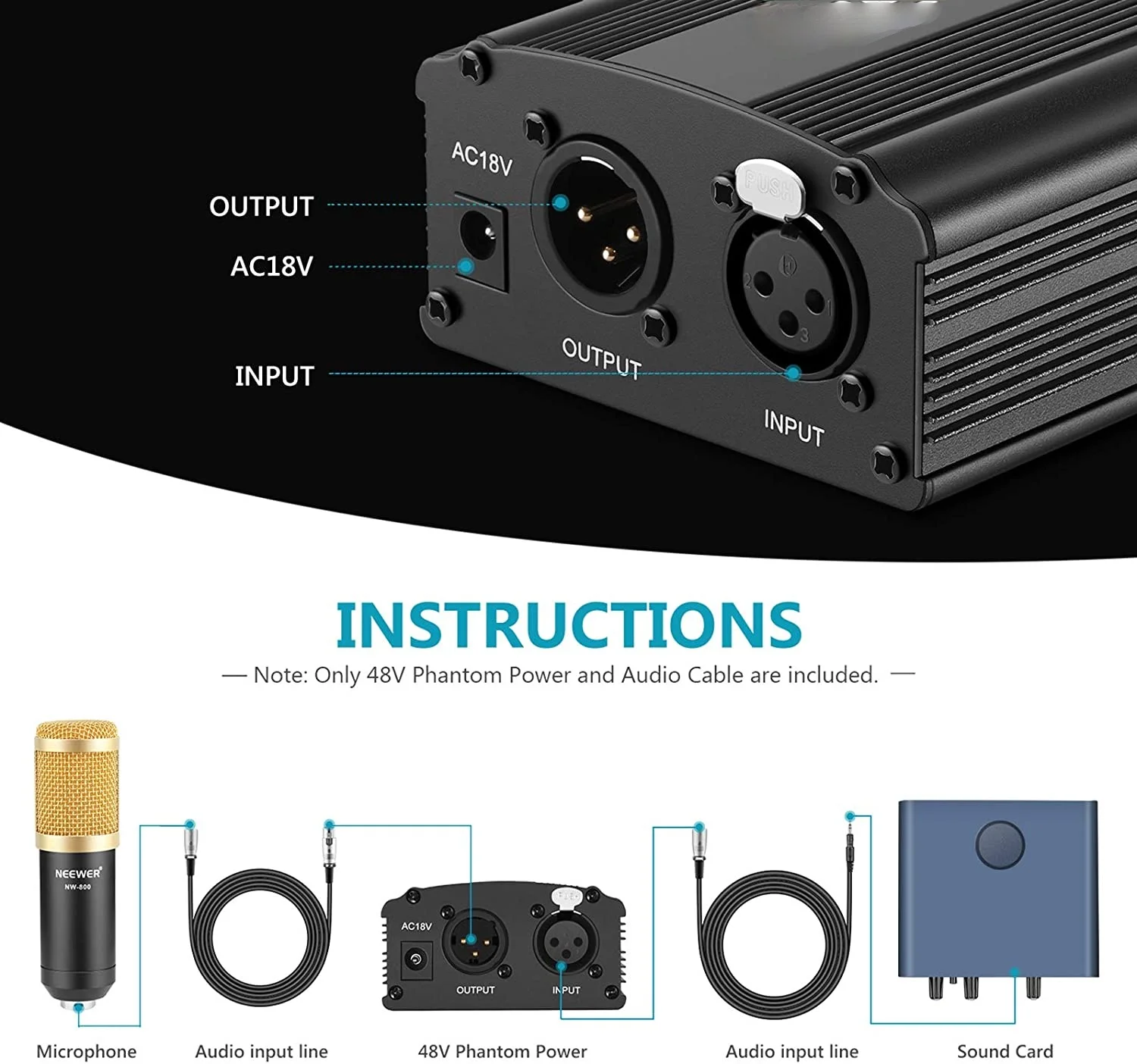 48V Phantom Питание с адаптером селфи-Стик, в качестве бонуса + XLR 3 Pin микрофонный кабель для любого конденсаторный микрофон музыка Запись оборудование