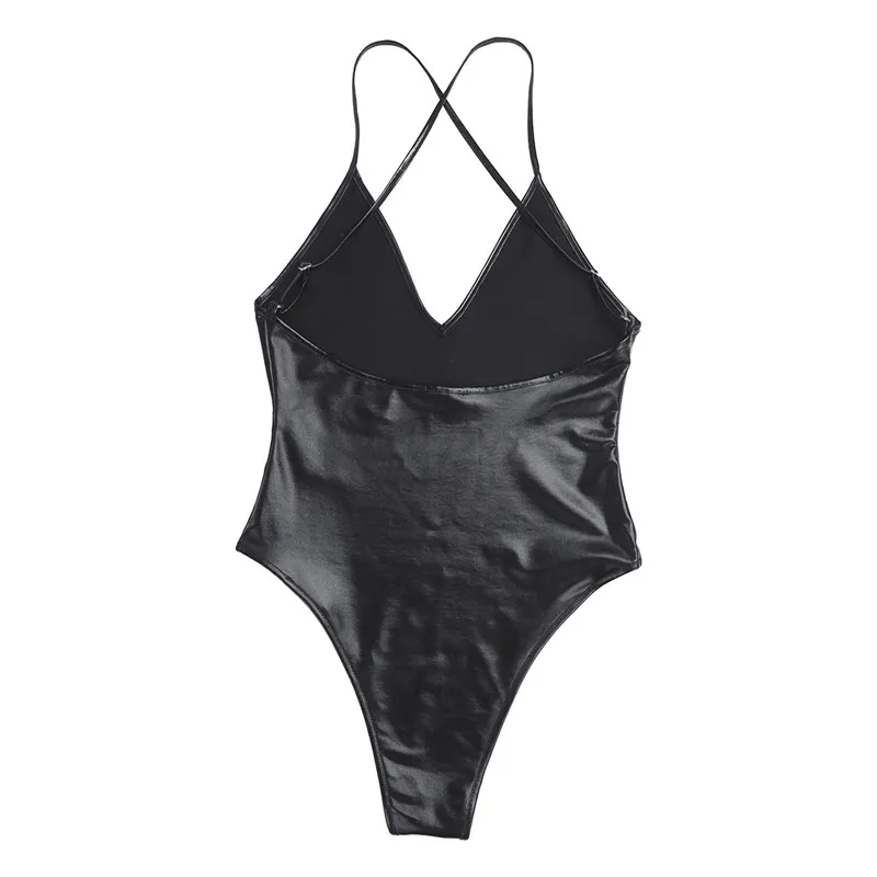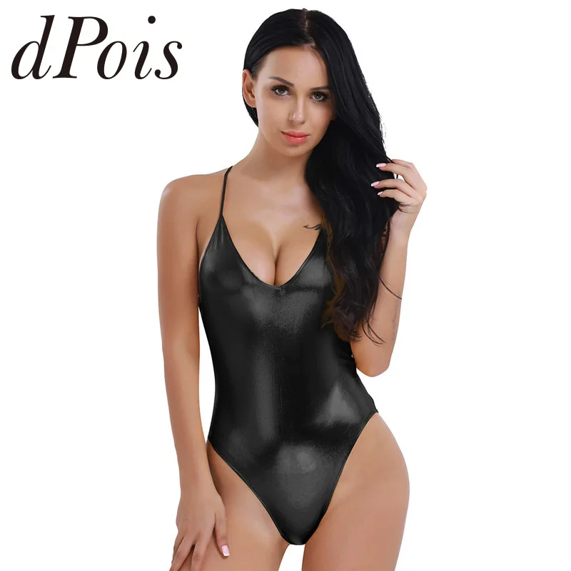 Женское цельное сексуальное нижнее белье из лакированной кожи с глубоким v-образным вырезом, женские купальники, женские купальники, цельные боди, женская пляжная одежда