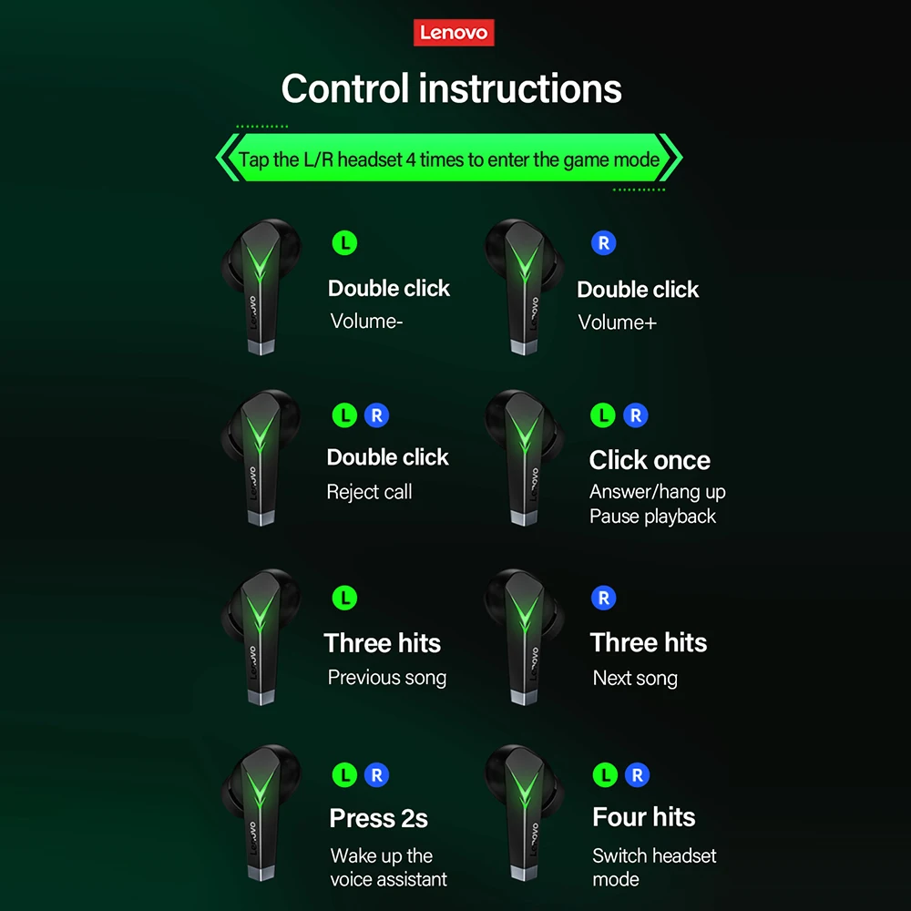 Lenovo LP6 двойной режим True Wireless BT наушники E-спортивные Игровые наушники-вкладыши спортивные гарнитуры 65 г-жа низкой задержкой игрыМузыка черный