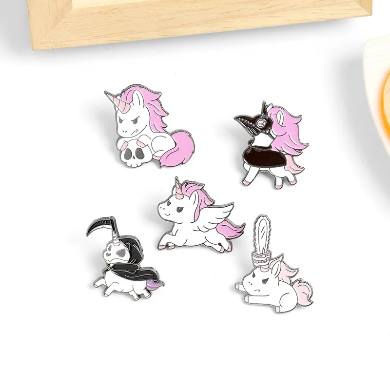 XEDZ ювелирных изделий розового цвета с изображением единорога В рыцарском стиле эмалевая Брошь Косплей лихорадка доктор убийца брошь череп мешок одежды значок подарок для друзей
