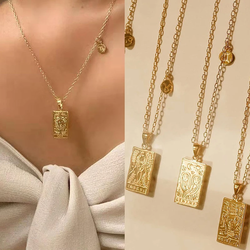Квадратный амулет, кулон, ожерелье из Таро с двенадцатью созвездиям...