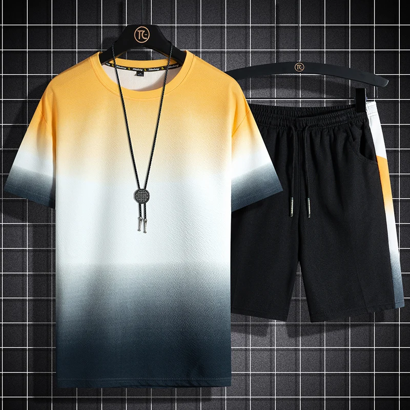 Костюм мужской повседневный с градиентом, джоггеры свободного покроя, уличная одежда в стиле хип-хоп, спортивный костюм с футболкой и шортами, комплект из 2 предметов 7XL, лето