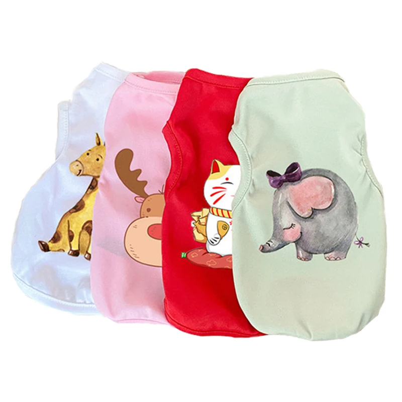 Футболка с мультфильмами без рукавов с принтом для собак и кошек, мягкая дышащая хлопковая одежда для домашних питомцев, милая куртка для щенков, весна-лето
