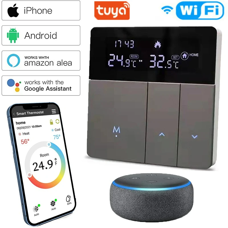 Управление приложением:Умный термостат, который может управляться вашим телефоном, прежде чем вы вернетесь домой. (Приложение: Tuya)