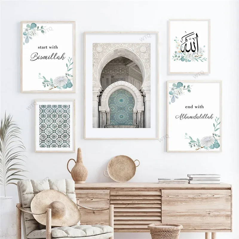 Абстрактная картина WTQ на холсте, мечеть, марокканский минималистичный Ретро плакат, постер, Настенная картина на ислам, декор комнаты, домашний декор