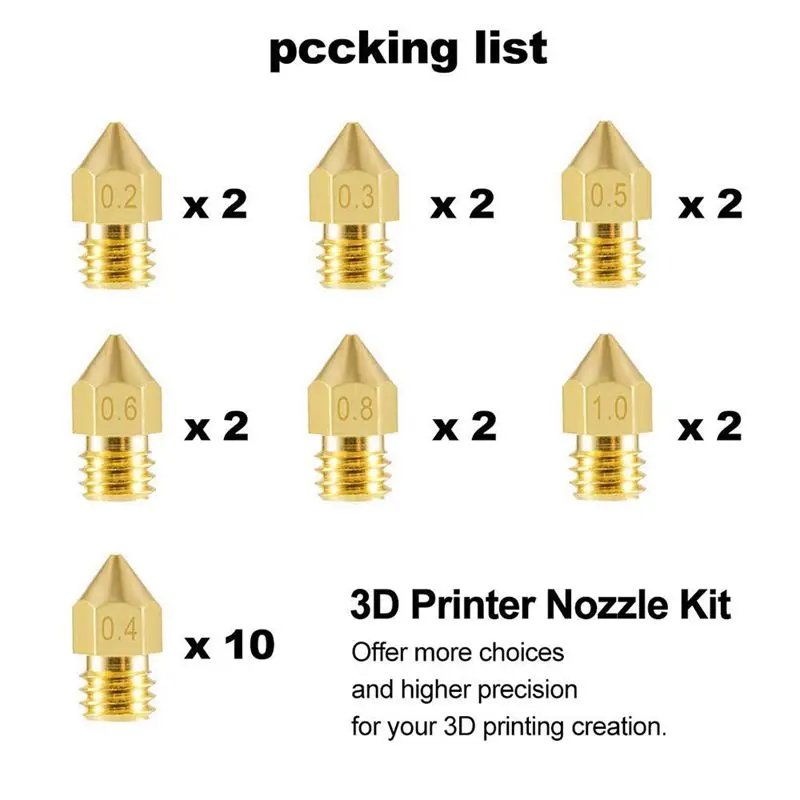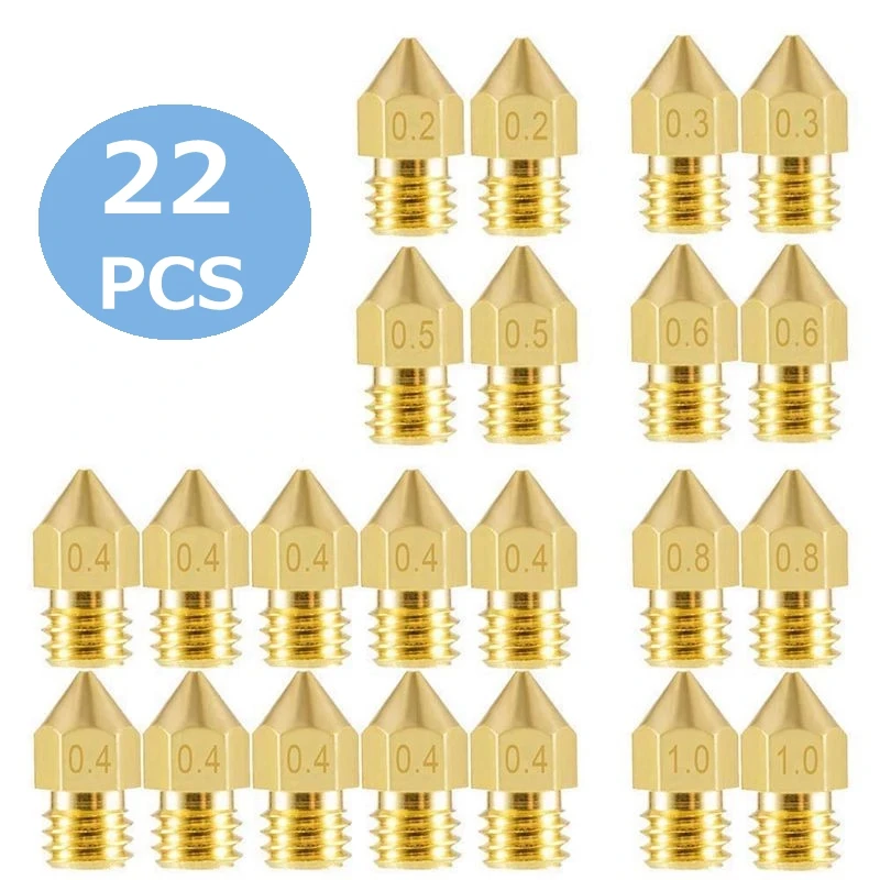 22 шт. Сопло MK8 0,2 мм 0,3 мм 0,4 мм 0,5 мм 0,6 мм 0,8 мм 1,0 мм латунная резьба экструдера для 1,75 мм головки нити детали для 3D-принтера
