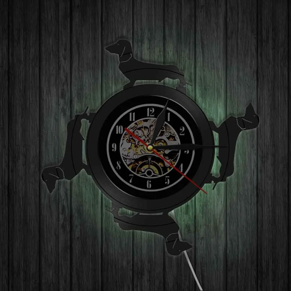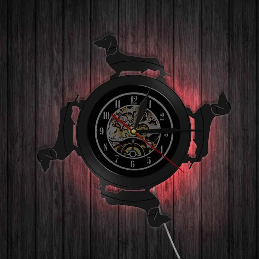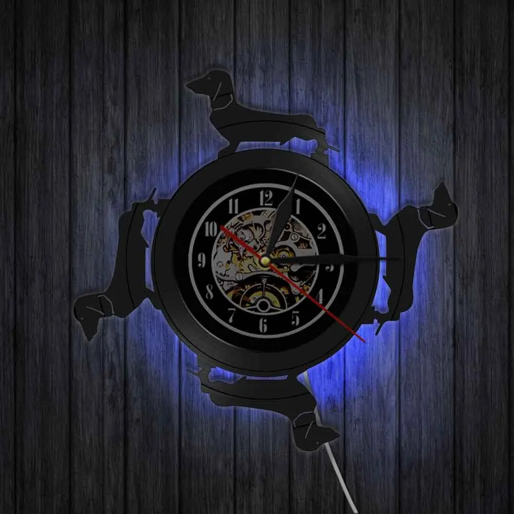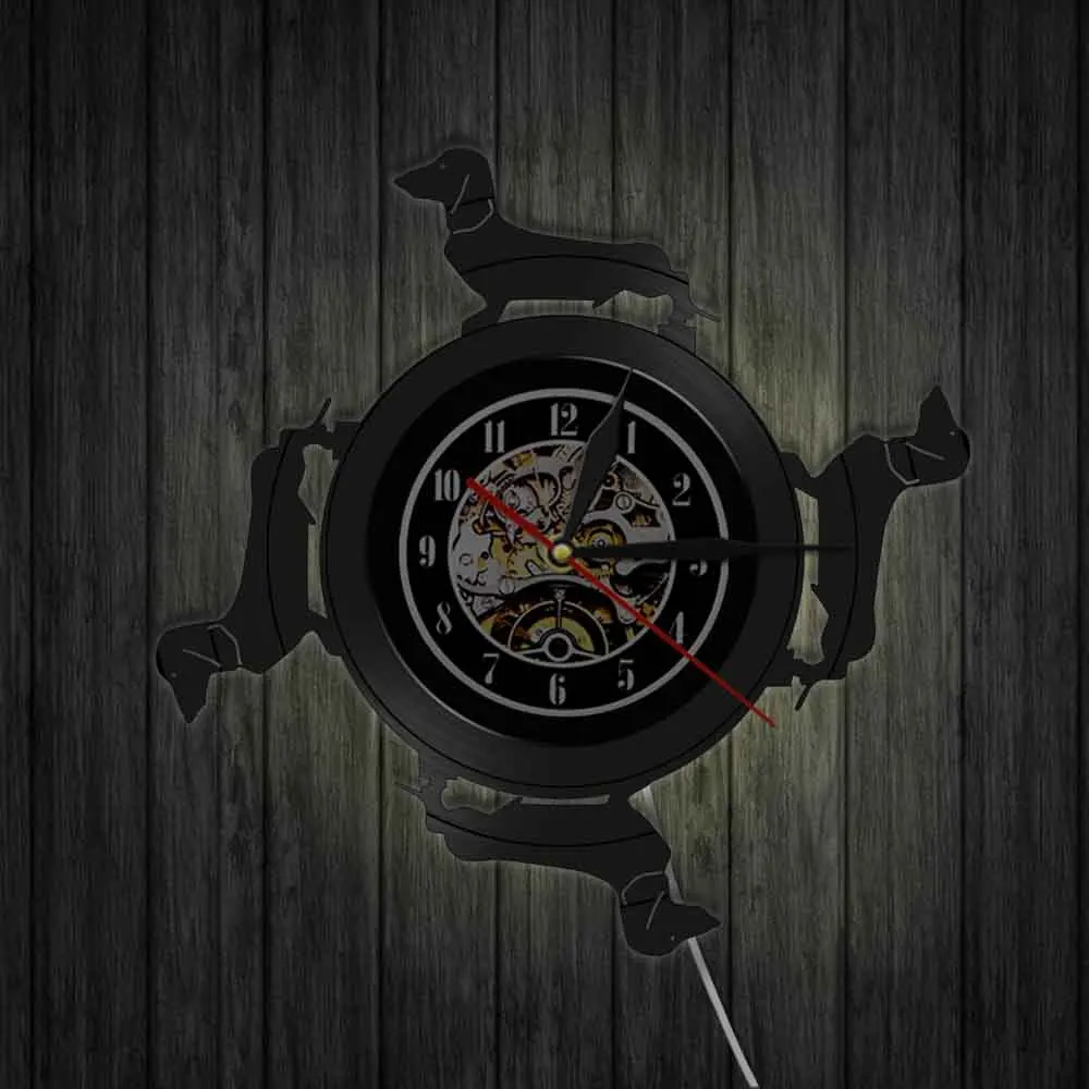 Длинношерстной таксы собака виниловых пластинок настенные часы Винер Chien животных аналоговые кварцевые часы для питомцев щенком дома Detor арт собачка подарок
