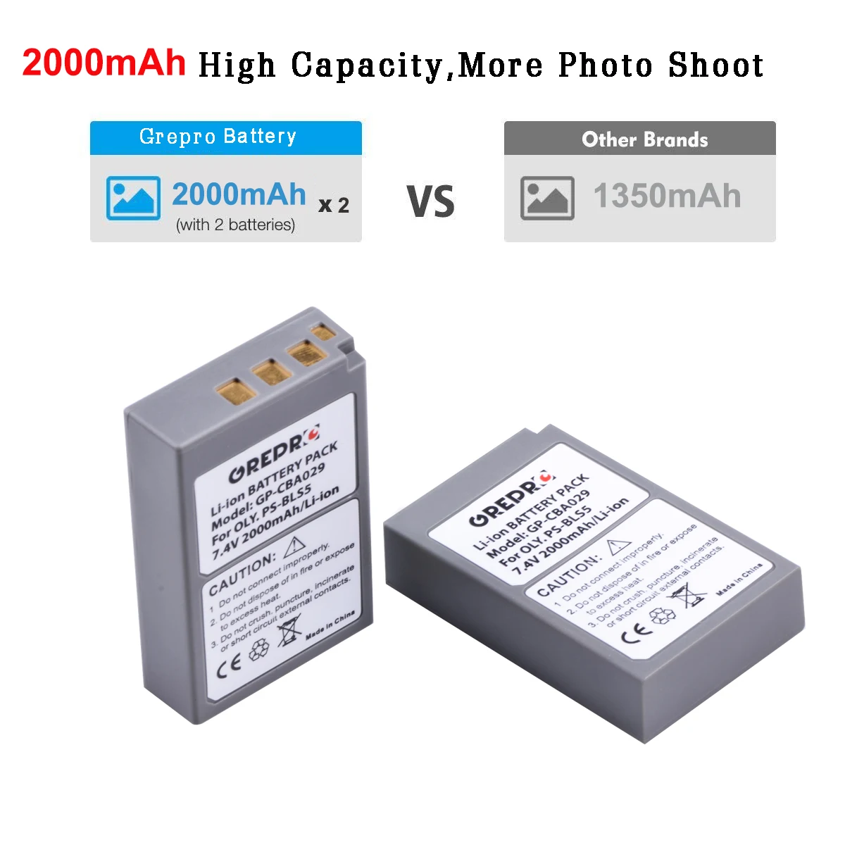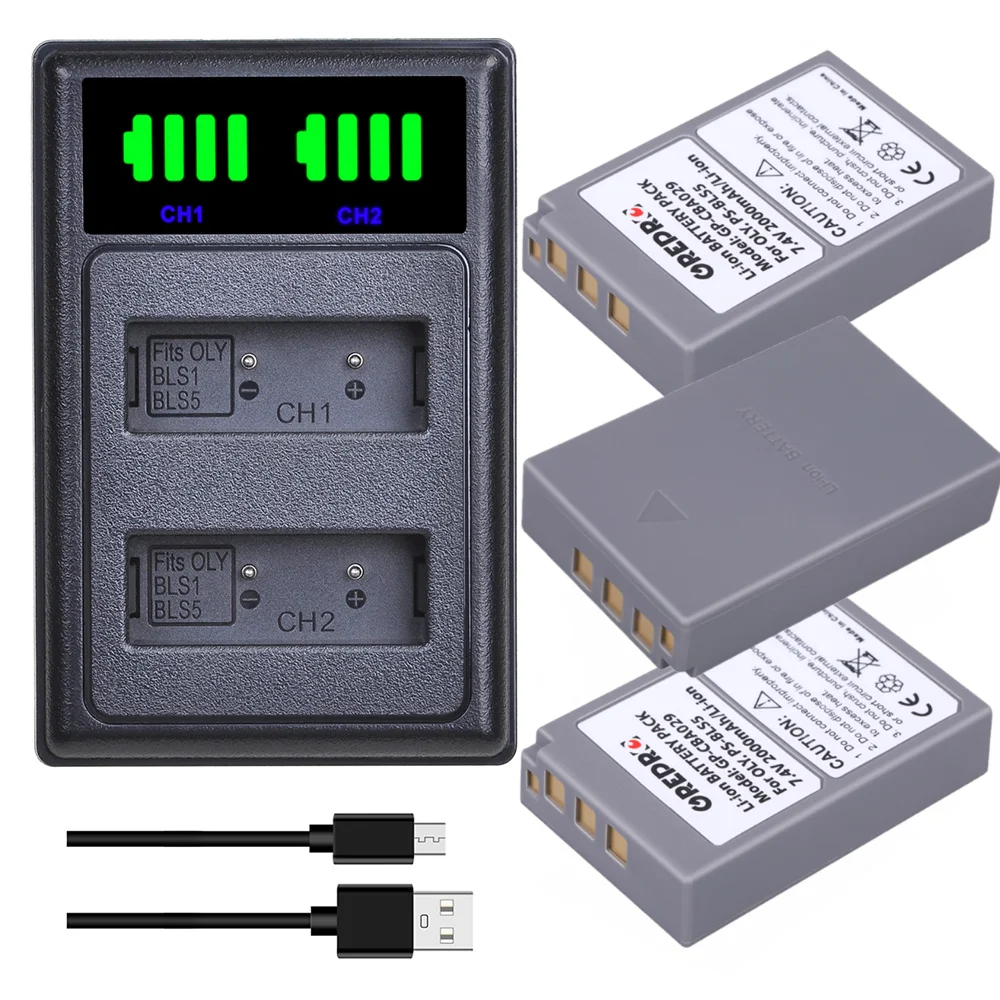 2000mAh PS-BLS5 аккумулятор камеры + светодиодный двойной зарядное устройство с портом Type-C
