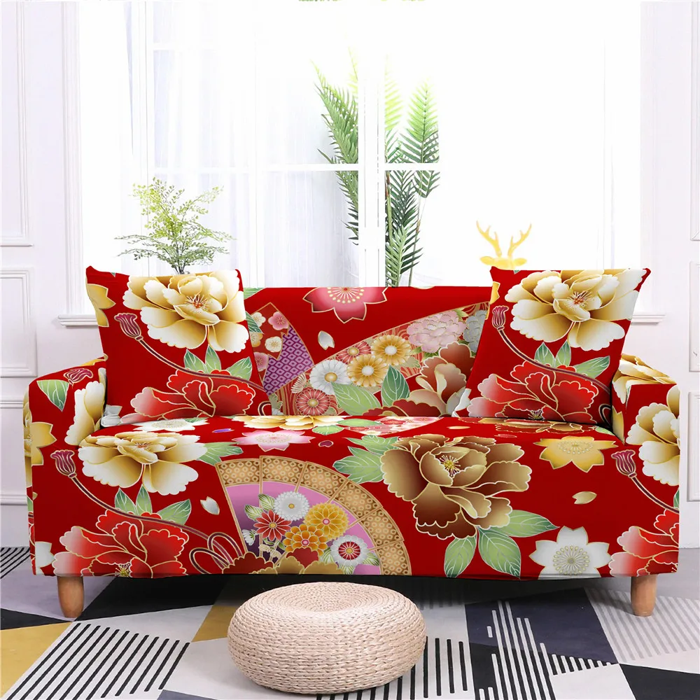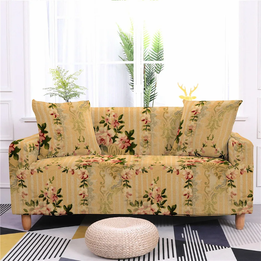 Чехол для дивана с цветочным рисунком, эластичное Полноразмерное нескользящее покрытие для гостиной, секционное покрытие для углов L, полотенце для дивана