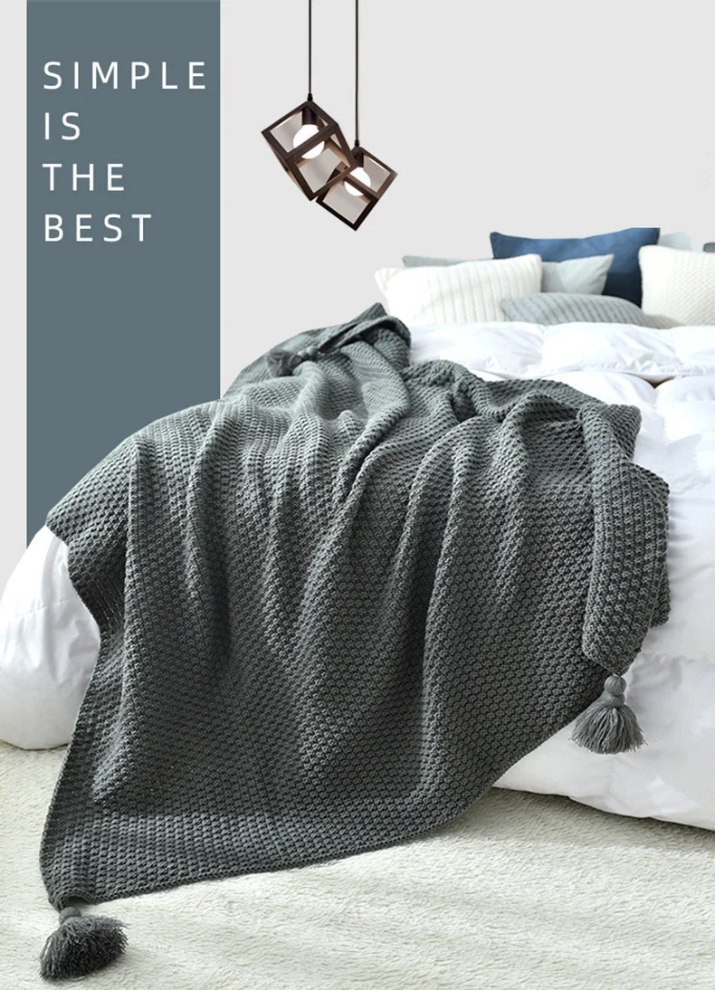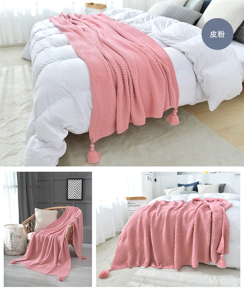 Трикотажное покрывало-плед вязаная однотонная офисная шаль для сна в скандинавском стиле, покрывало для дивана, кровати, дышащий гобелен