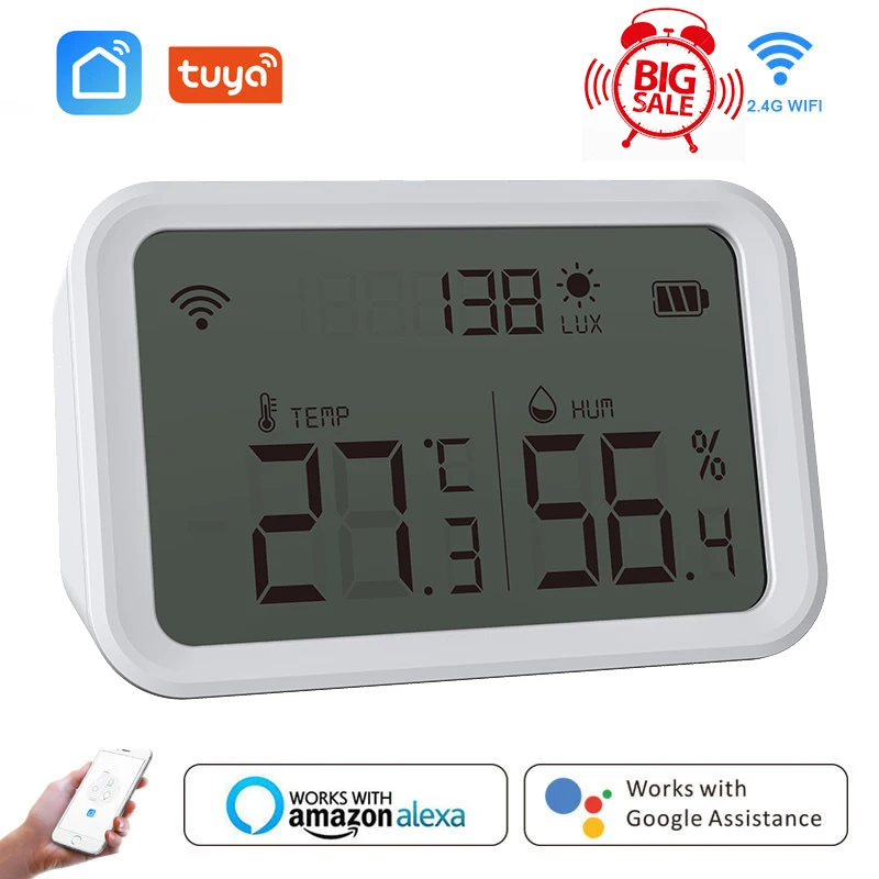 Датчик температуры и влажности Tuya, Wi-Fi, интенсивность света, ав...